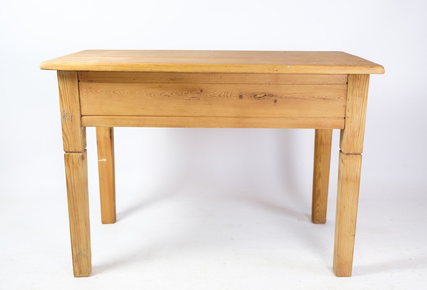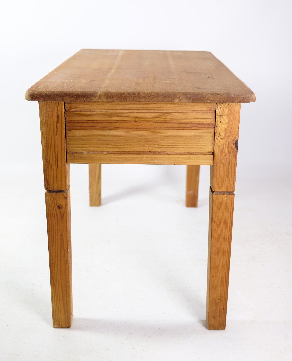 This circa 1920s pine side table with one drawer is a charming example of early 20th century furniture design. Its simple yet sturdy construction and vintage look add character and nostalgic appeal to any room.