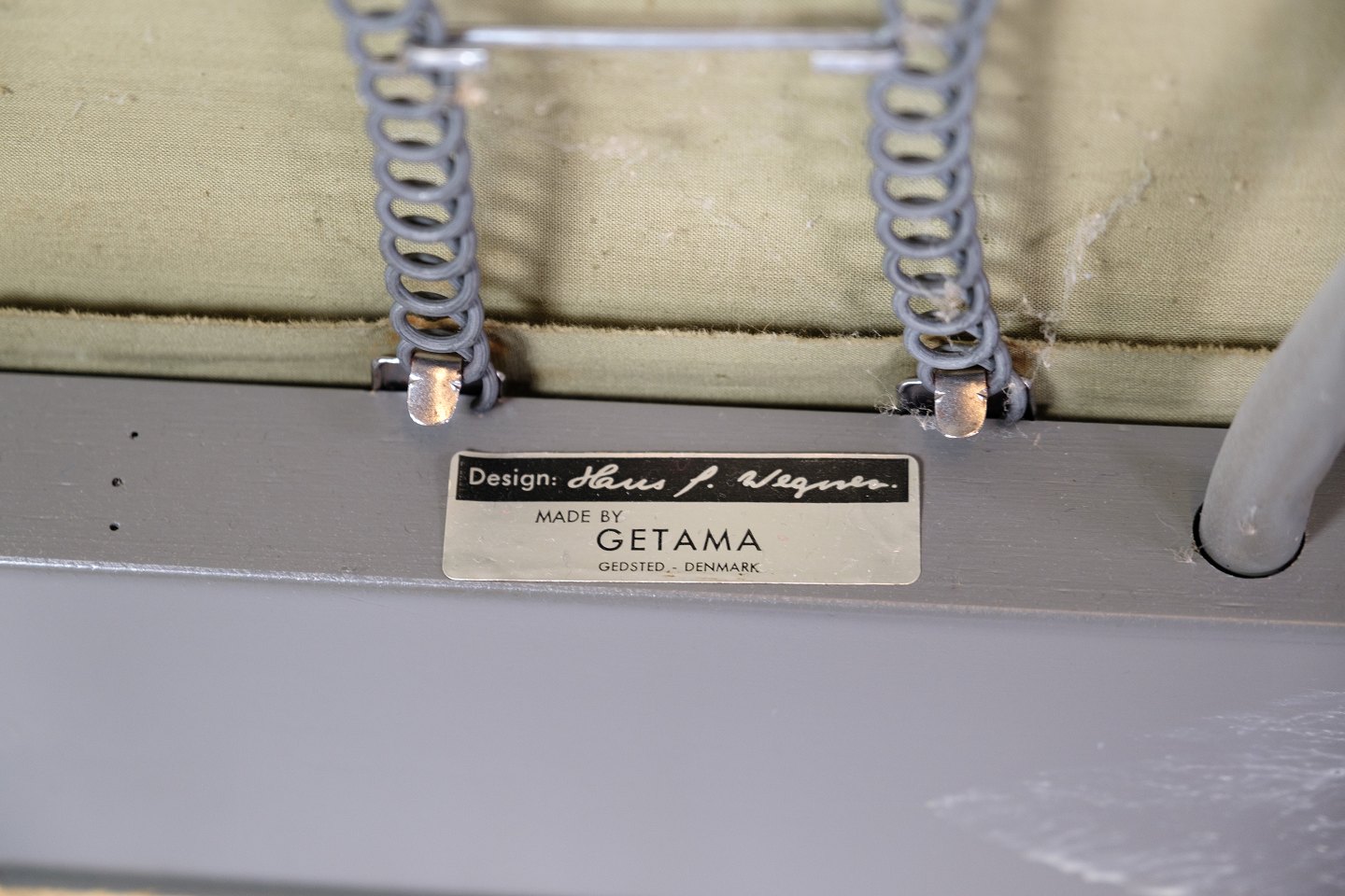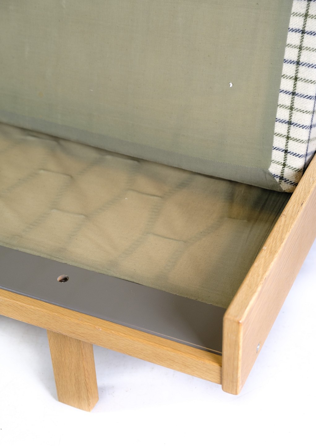 Hans J. Wegners daybed / sofa i egetræ er et unikt design fra omkring 1960'erne, skabt med en tidløs æstetik og fremstillet hos Getama. Den imponerer med et flot stel af massivt egetræ og hynder af lyst stof med et charmerende ternet mønster. Sofaen står i flot brugt stand, hvilket tillader dig at nyde dens unikke charme og komfort til fulde.