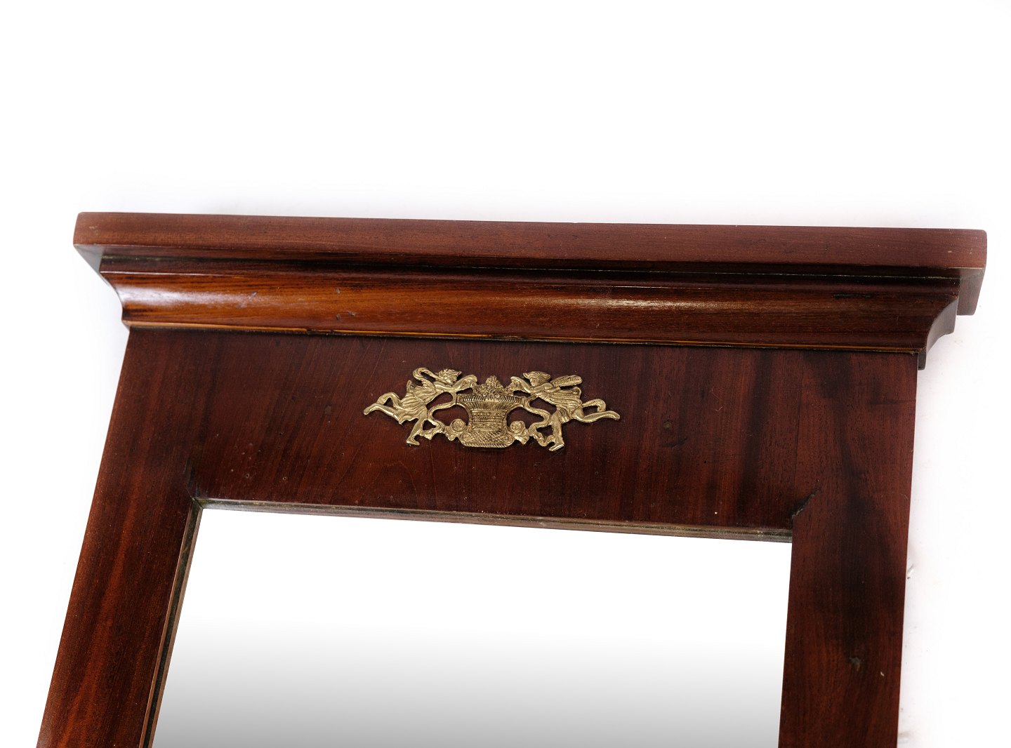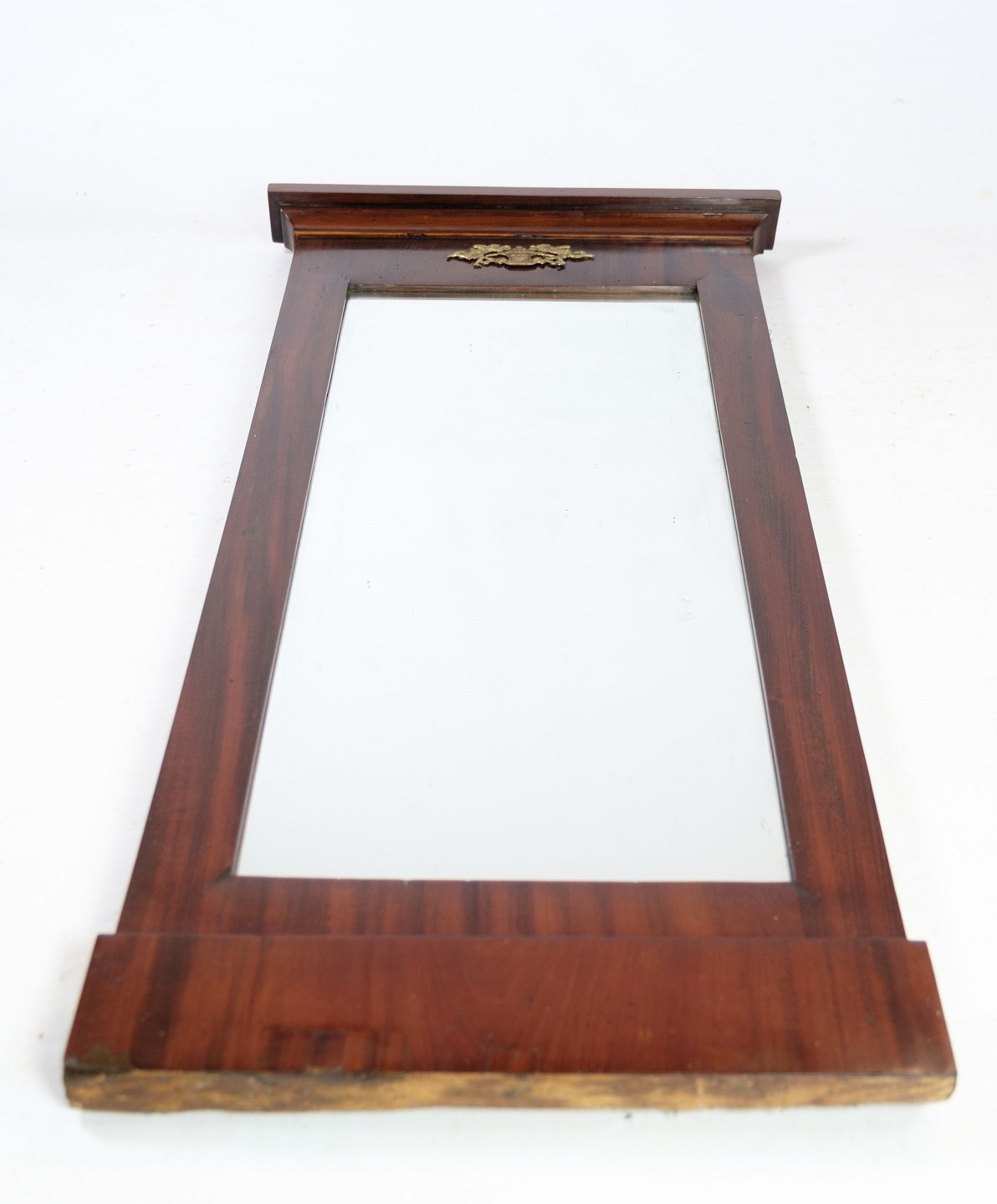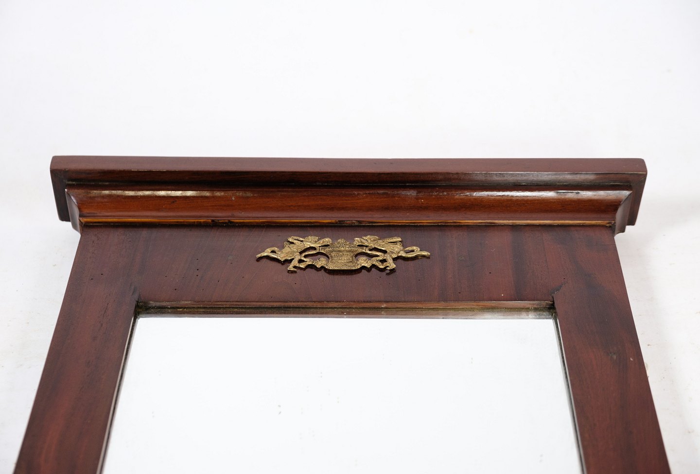 Mirror of hand-polished mahogany, with brass decoration, made in Denmark from around the 1880s.