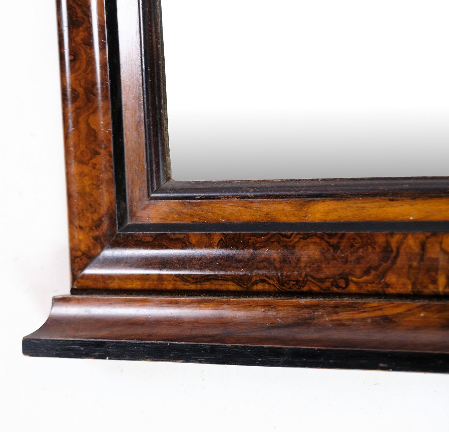 SoldMirror of hand-polished mahogany, with carvings, made in Denmark from around the 1880s