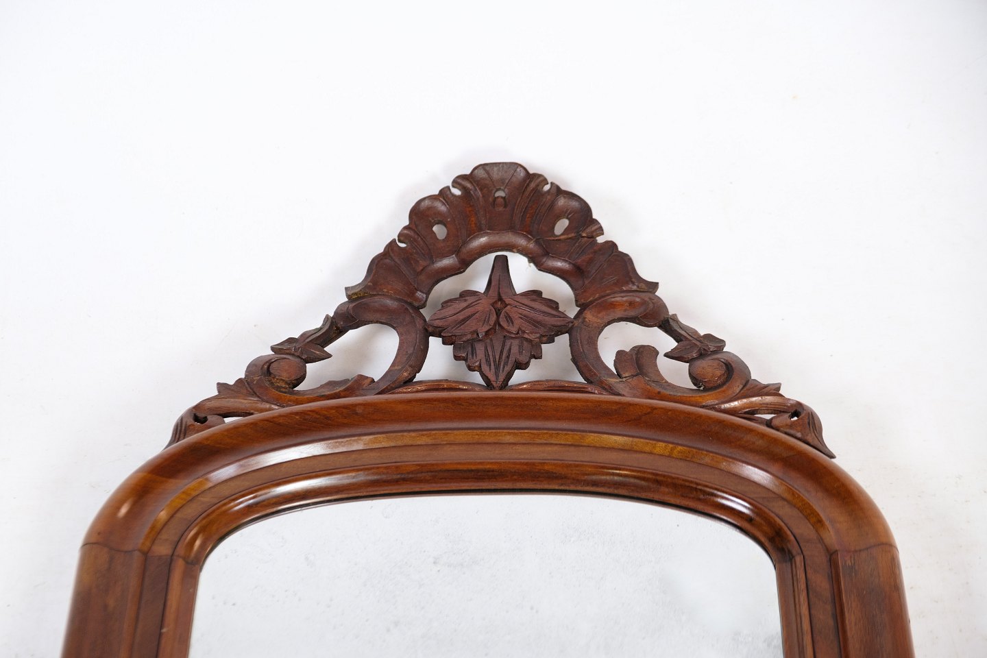 SoldAntique mirror in mahogany wood, decorated with carvings from around the 1860s.