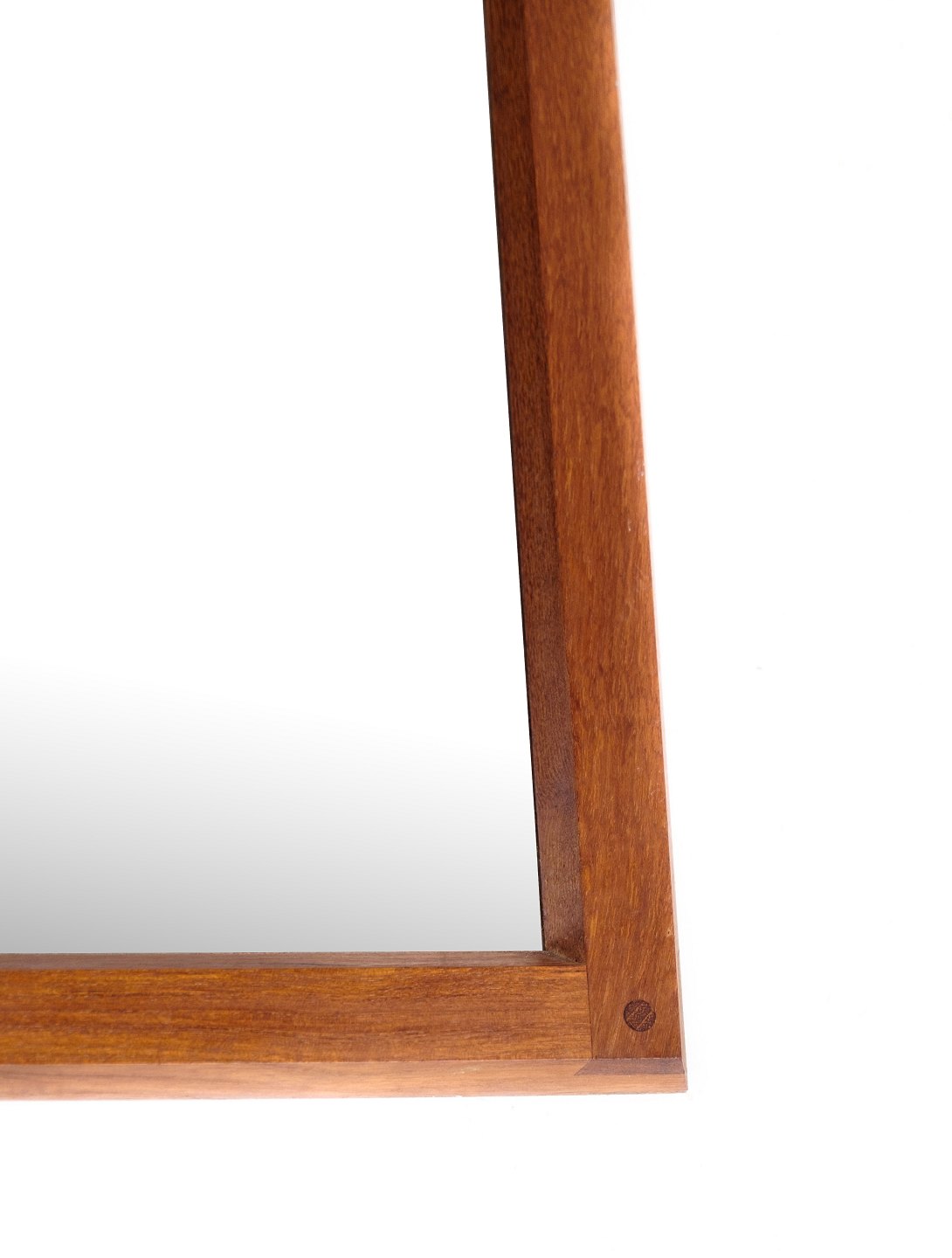 Spejl i træsorten teaktræ designet af Aksel Kjersgaard fra omkring 1960'erne.