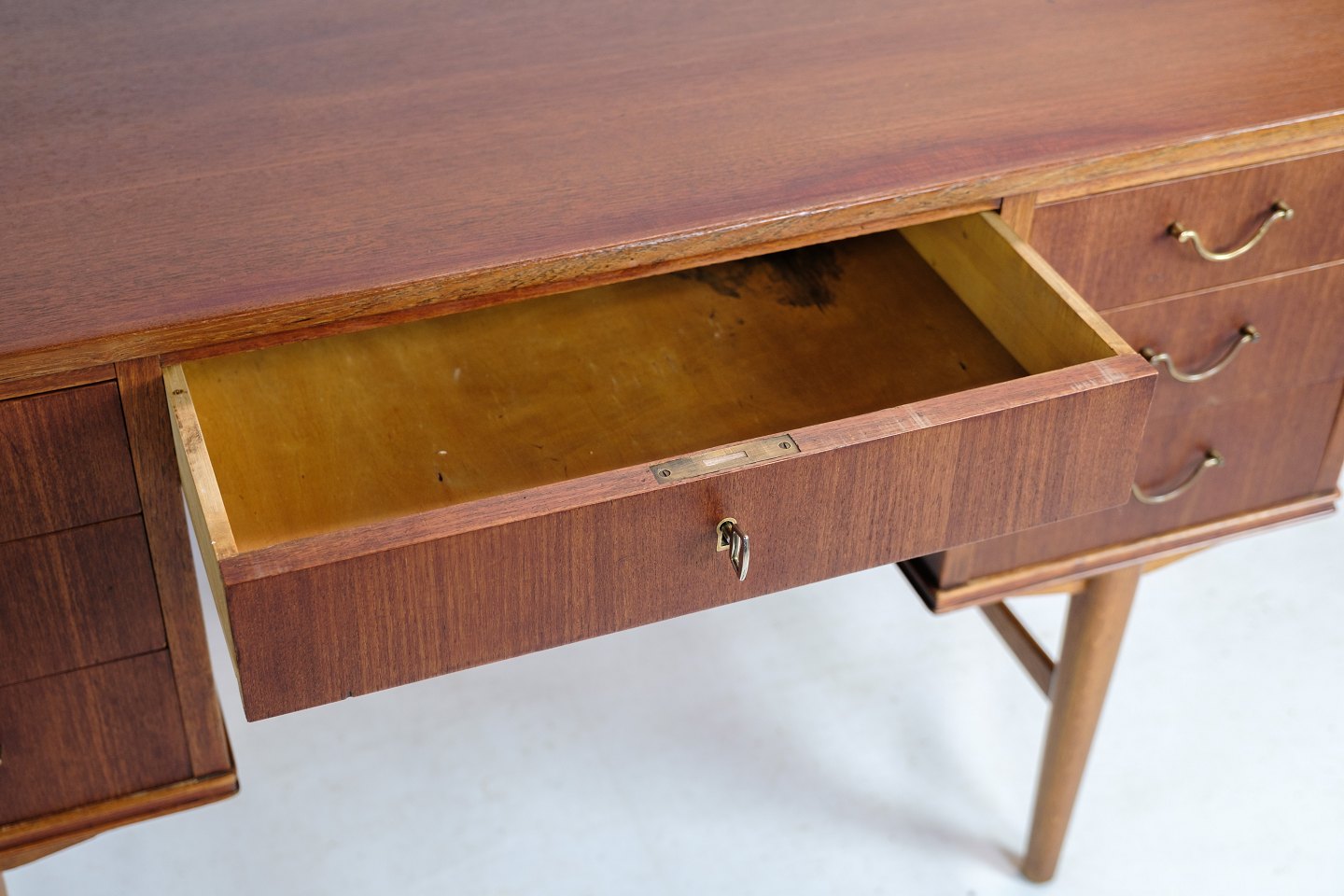 Skrivebord af dansk design fra omkring 1960'erne og er lavet af teaktræ. Skrivebordet har tre skuffer i hver sin side, hvilket giver god opbevaringsplads til kontorartikler og dokumenter.