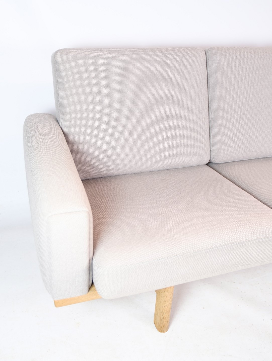 SolgtSofaen GE-236/3, designet af Hans J. Wegner og fremstillet af Getama i 1960erne, er en elegant og stilfuld trepersoners sofa. Den er polstret med et lyst uldstof, der giver den et blødt og behageligt sæde. Rammen er fremstillet af solidt egetræ, der giver sofaen et robust og holdbart udseende. Sofaen vil være et fremragende valg for dem, der ønsker at tilføje et touch af dansk design og håndværk til deres hjem.