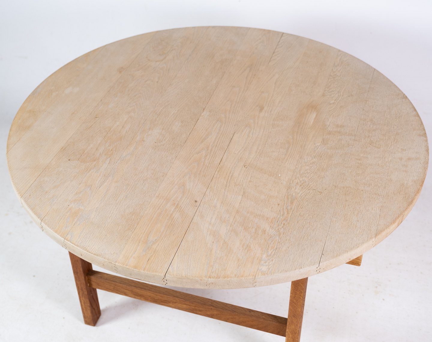 Round coffee table, designed by Hans J. Wegner (1914-2007) of solid oak manufactured by PP Møbler. The table is soap-treated but can also be oiled.