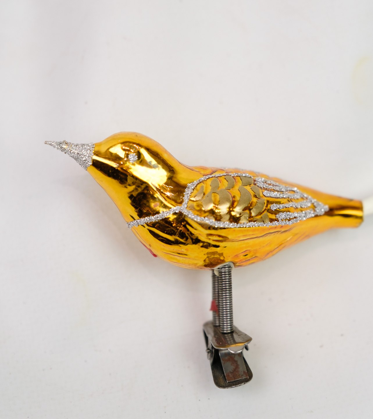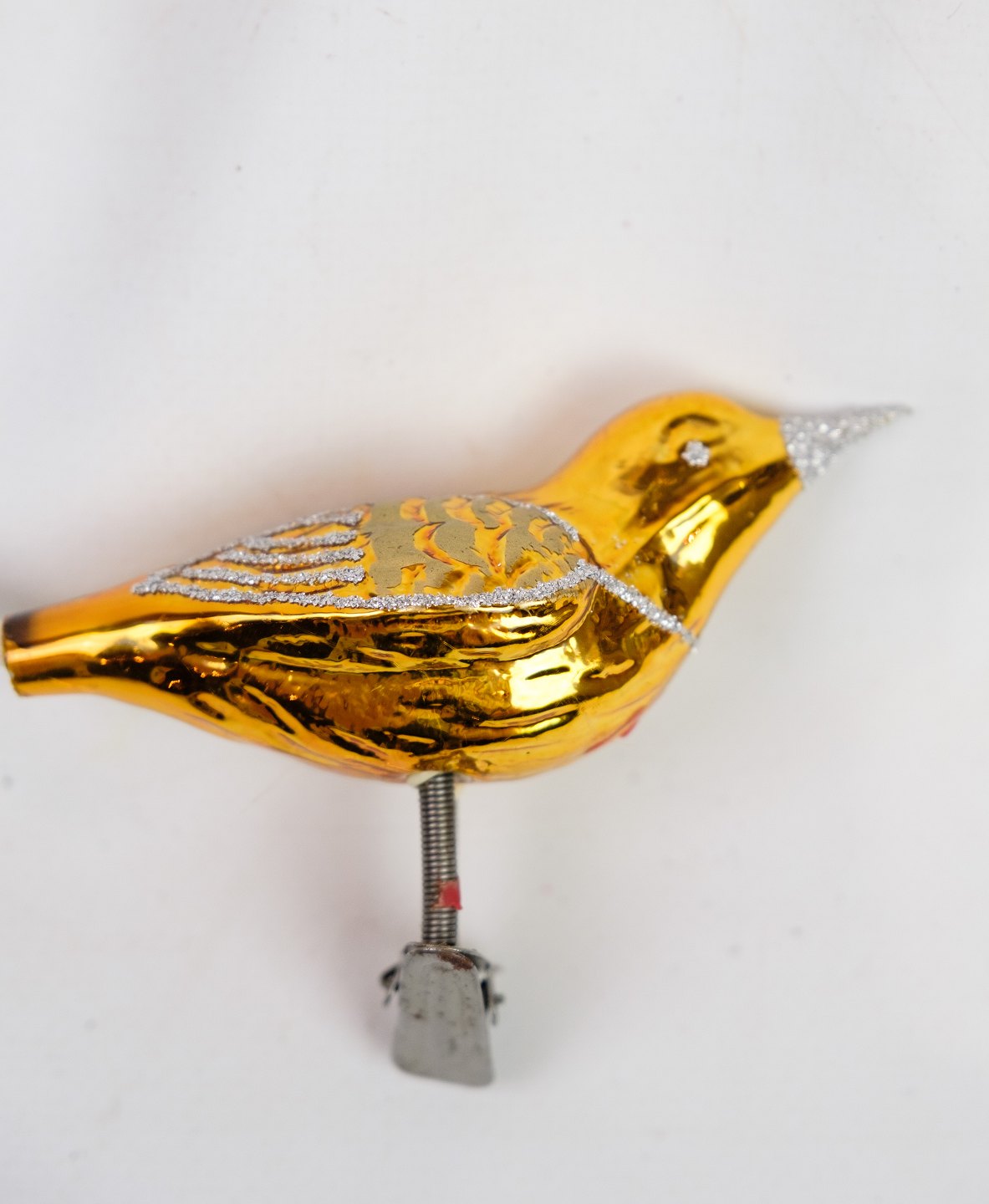 Gammelt Julepynt i håndmalet glas fugl fra omkring år 1930'erne.