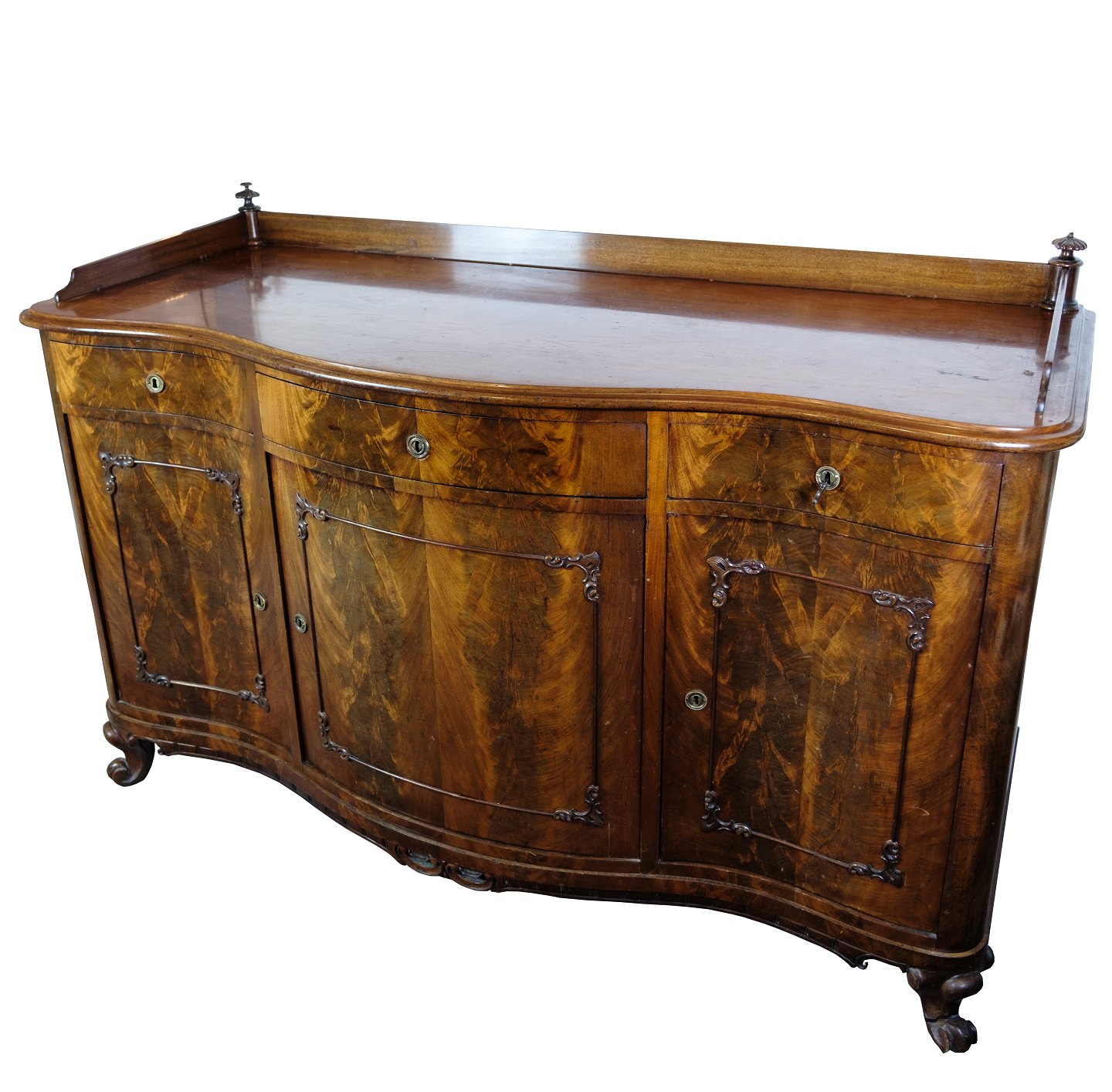 Antique sideboard, mahogany, curved front, Denmark, 1840