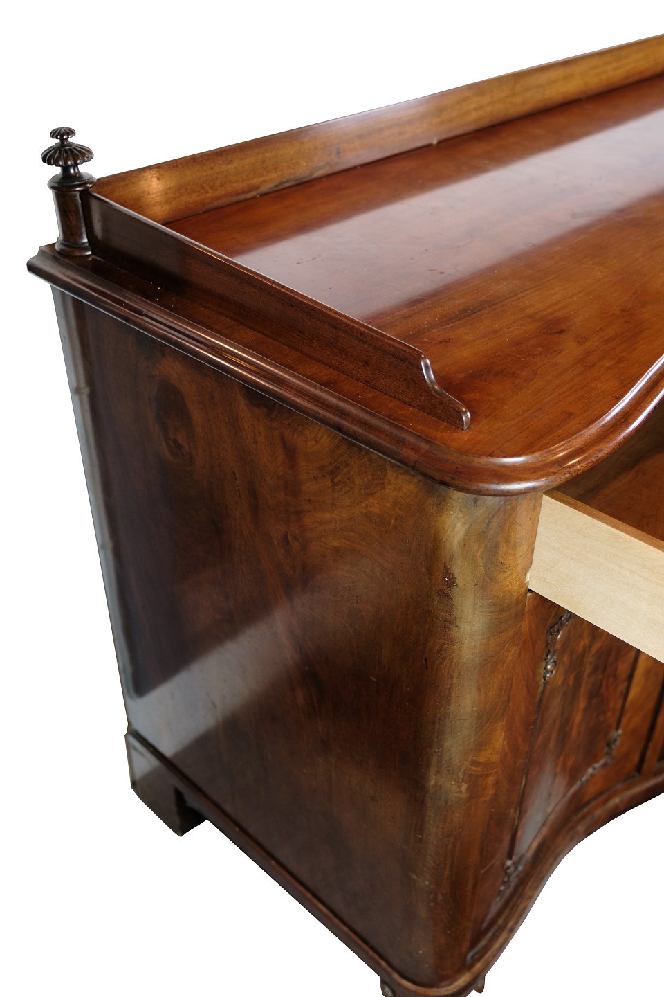 Antique sideboard in mahogany wood with a nice curved front made in Denmark from around the 1840s.