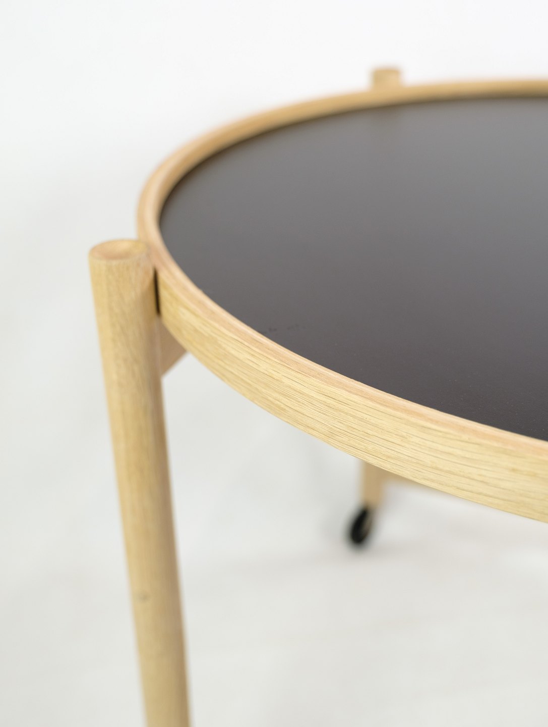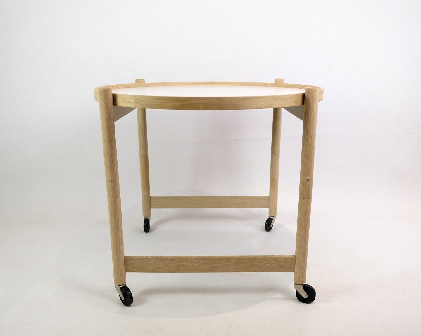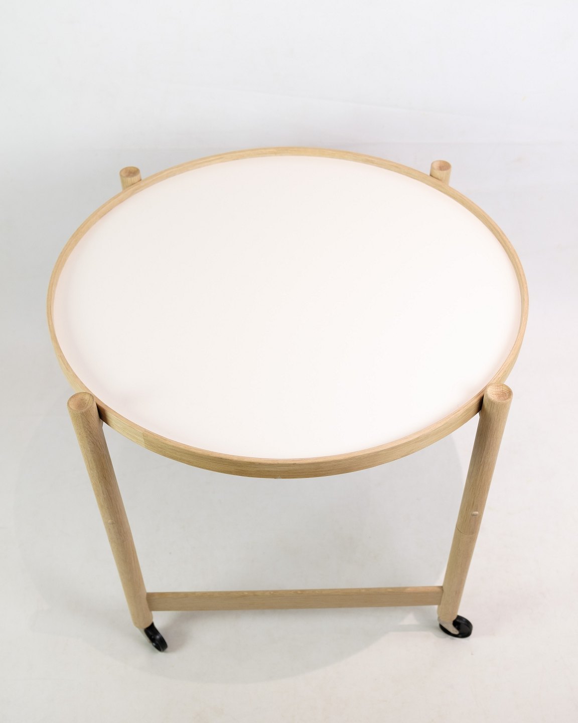 Tray table, designed by Hans Bølling of the wood type oak with white laminate tray.
