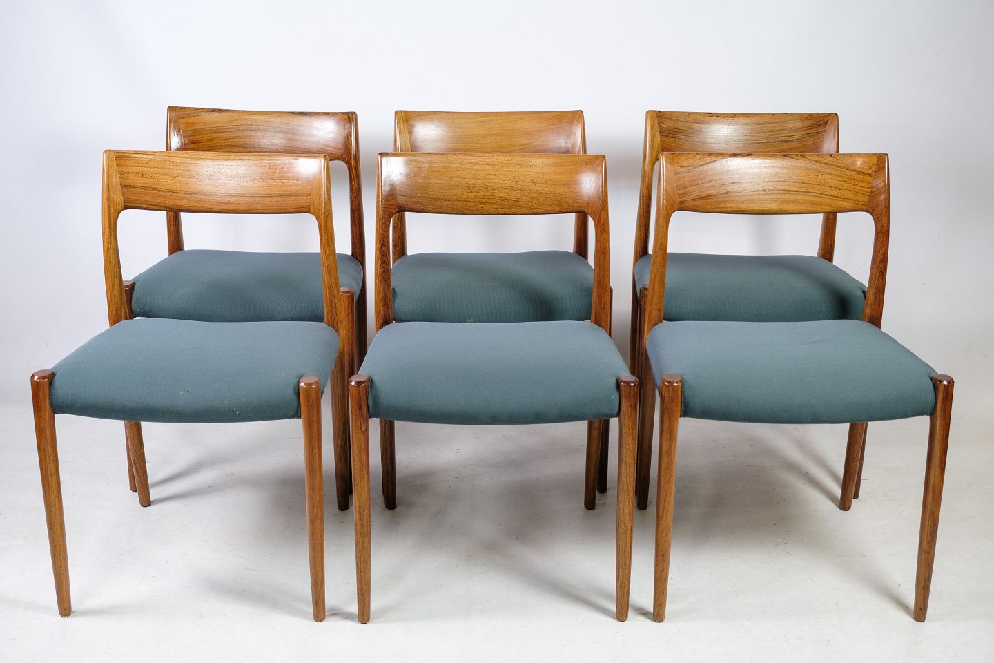 SoldSet of six dining room chairs, Model 77, designed by Niels Otto Møller in rosewood manufactured at J.L Møller's Møbelfabrik from around the 1960s. The chair was designed in 1959 and is made of solid rosewood.