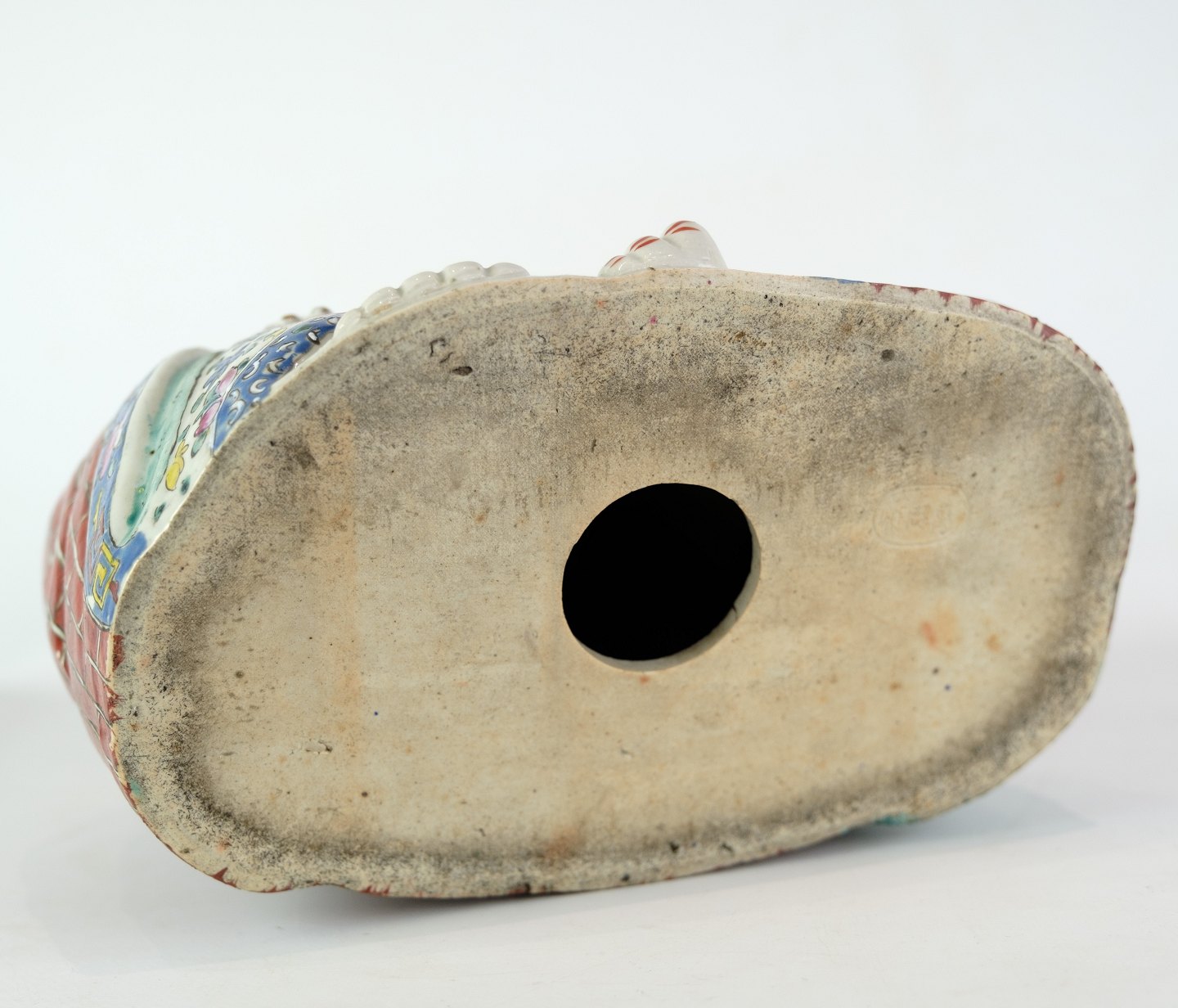 SolgtSiddende Buddha darduse figur af porcelæn dekoreret i lyse of brune farver fra kina omkring 1900-tallet.