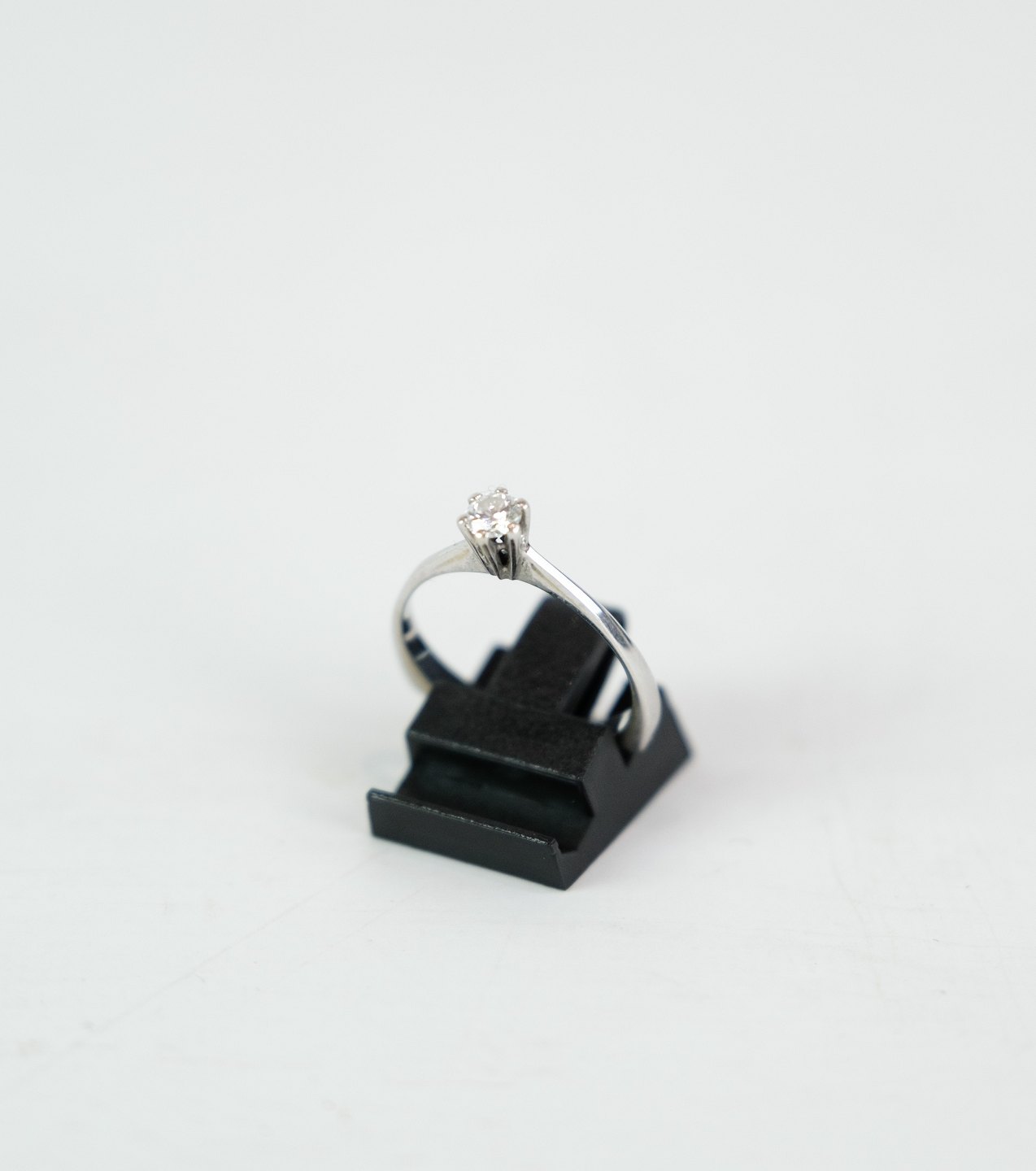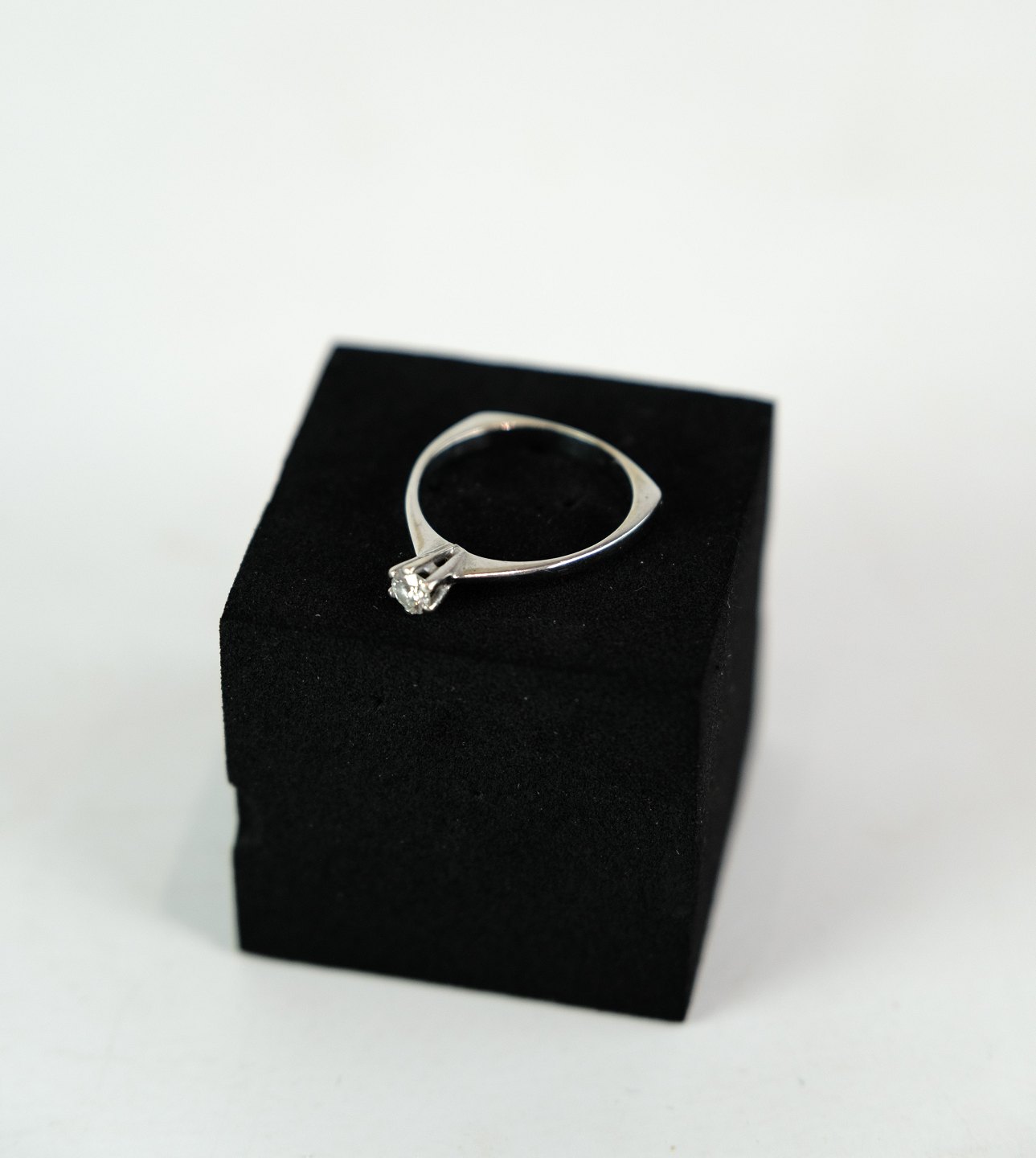 Prinsesse / solitaire ring af hvidguld af 14 karat guld, stemplet "BEC" 585 med en 0,25 karat diamant.