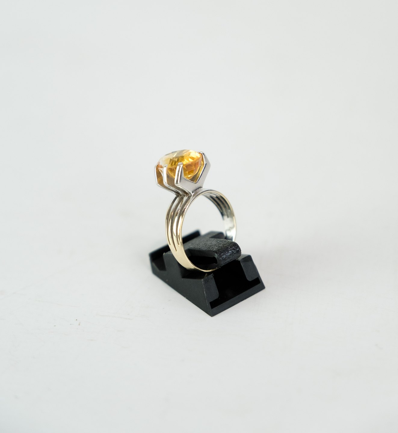Ring i 14 karat guld, stemplet 585 med en stor oval citrin med orange farve i indfatning af 6 greb.