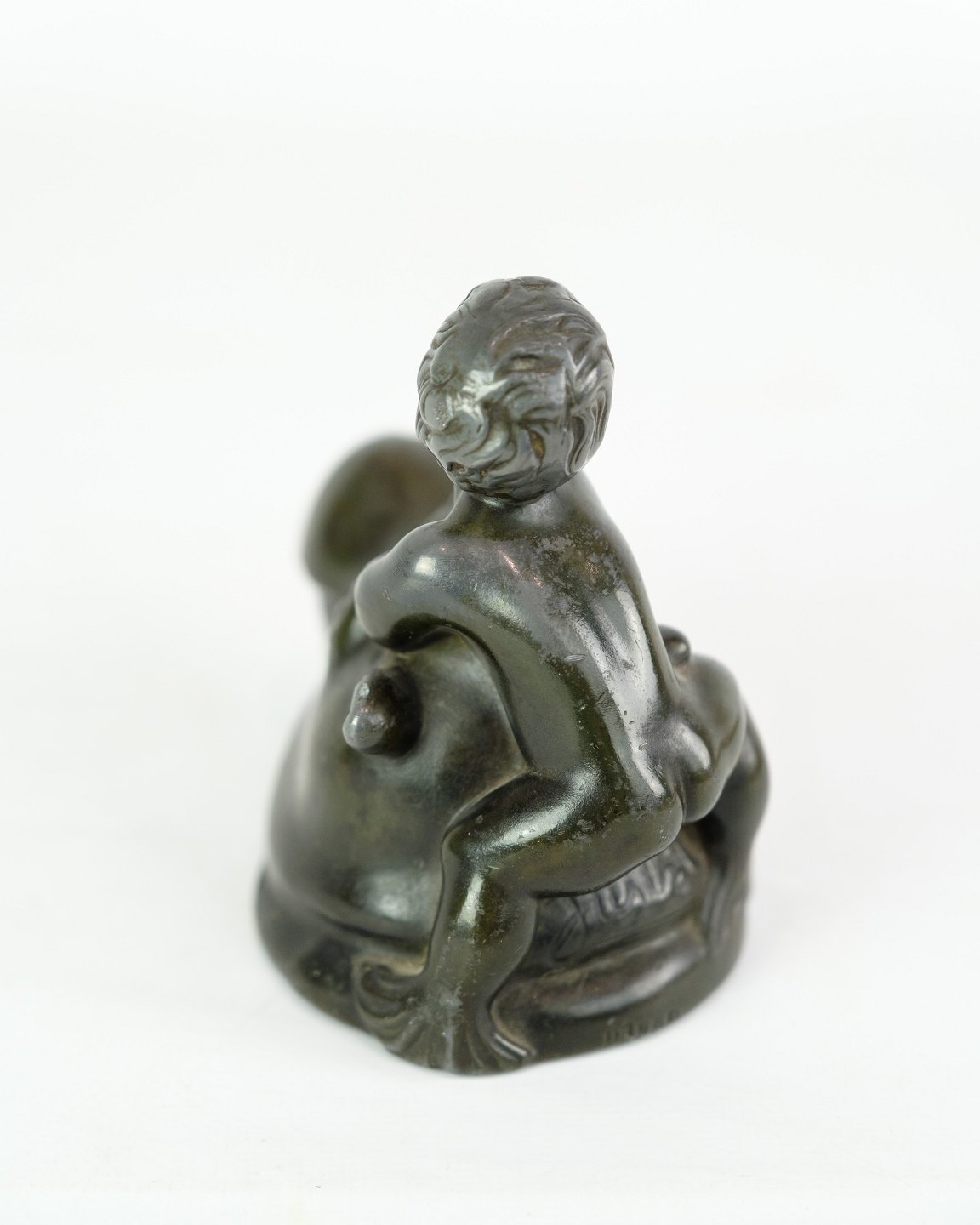 SoldFigure, designed by Just Andersen of Discometal no. D1616 motif of a sea boy on a hippopotamus. In good used condition.