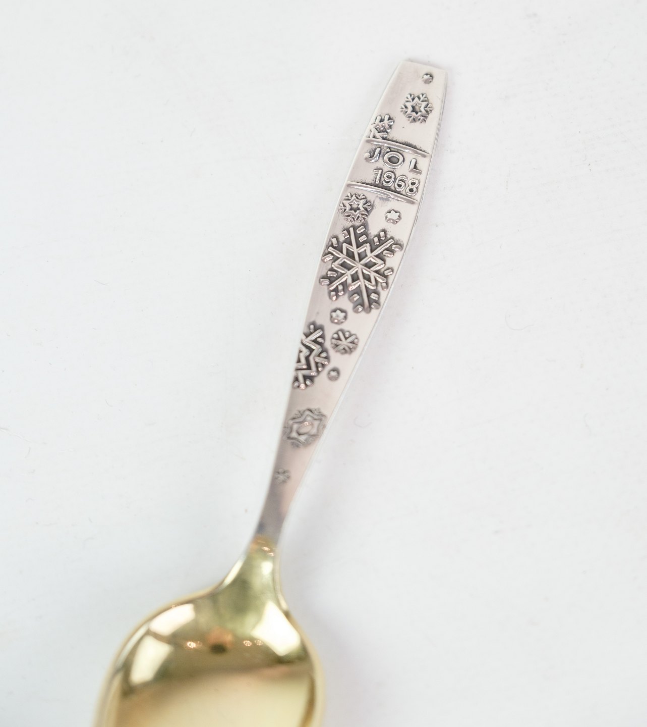 Christmas spoon in partial silver gilt with motif of snowflakes from the year 1968.