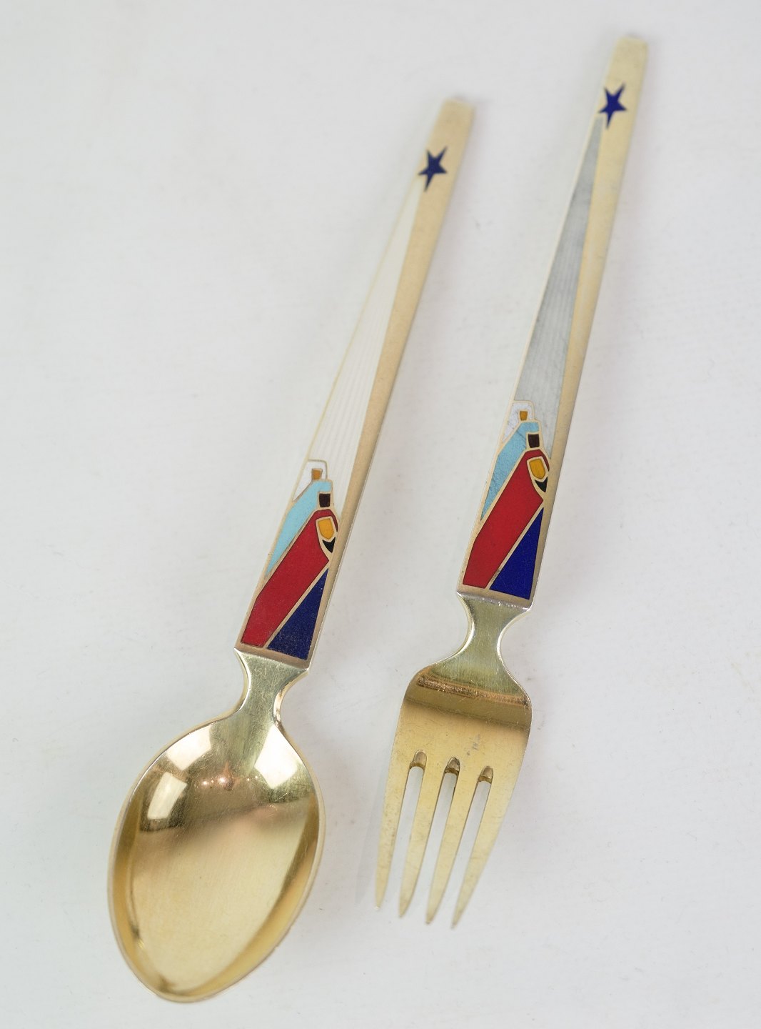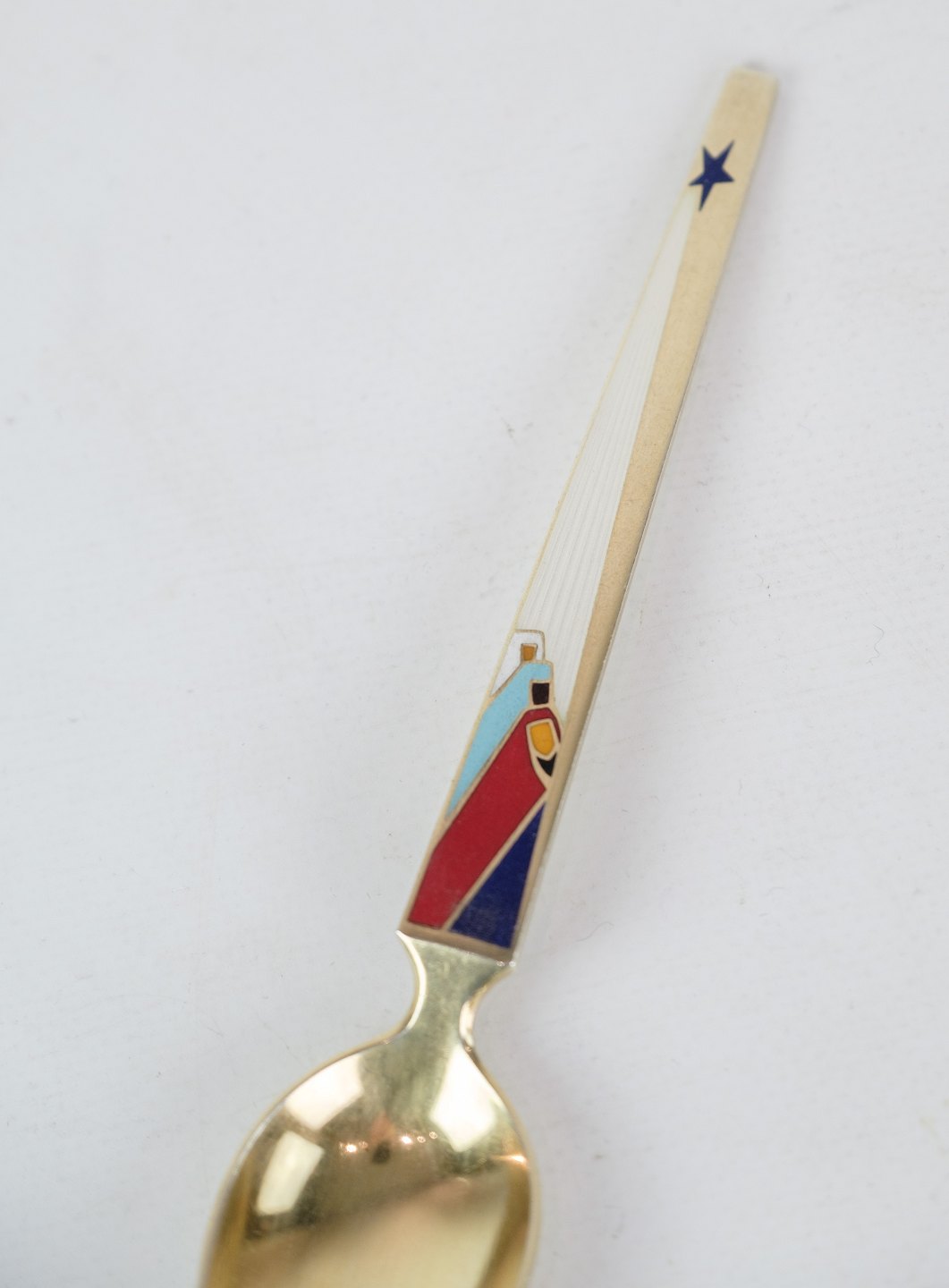 Christmas spoon 1958 Title "Wise men of the East" Gilded silver with enamel decoration designed by the artist Karl Gustav Hansen and produced by Anton Michelsen.