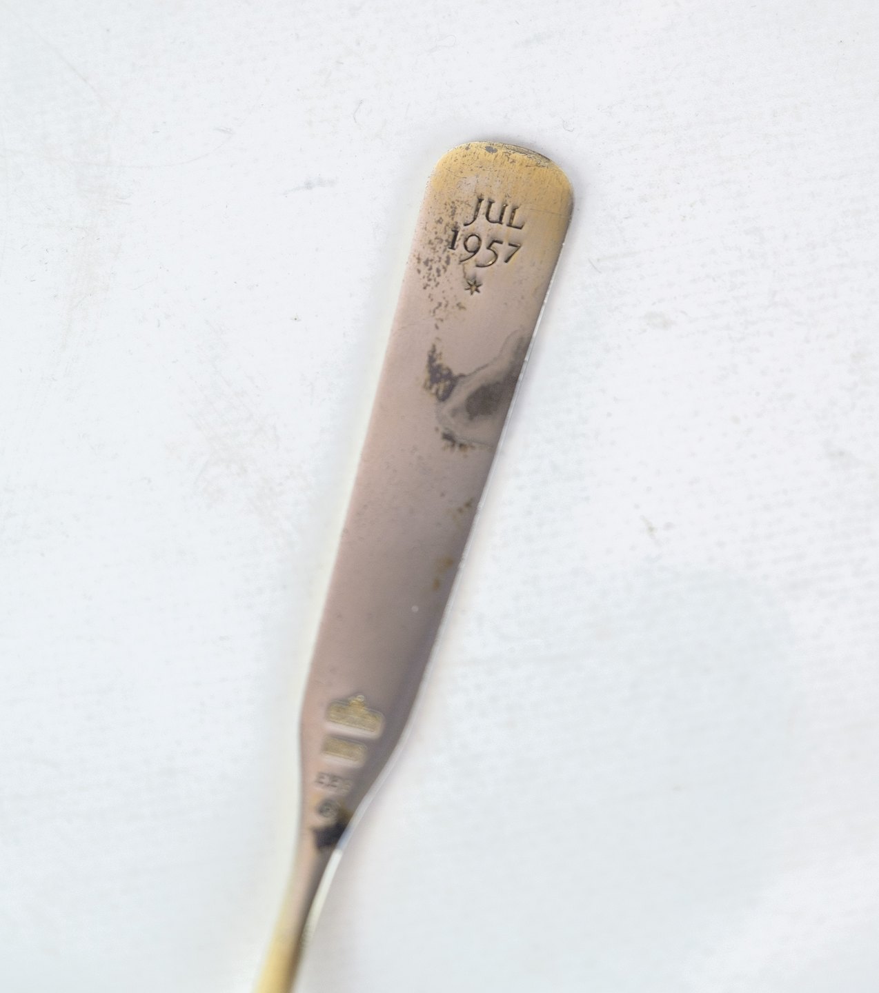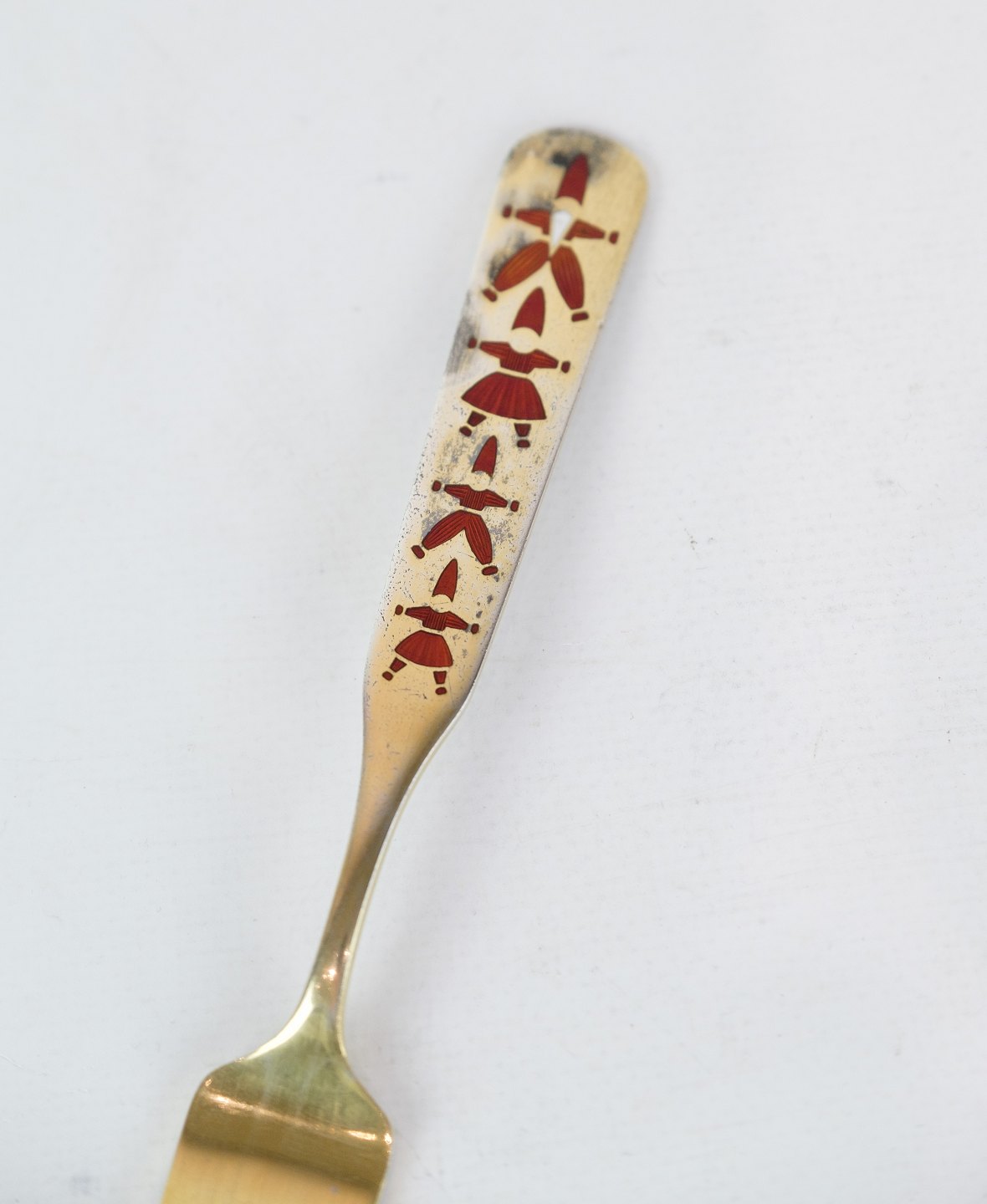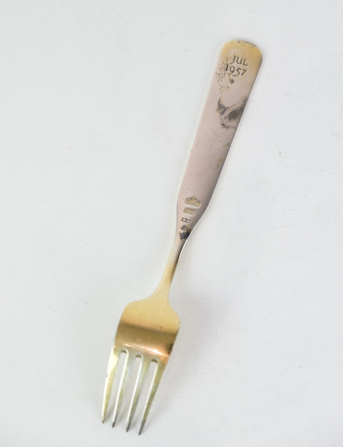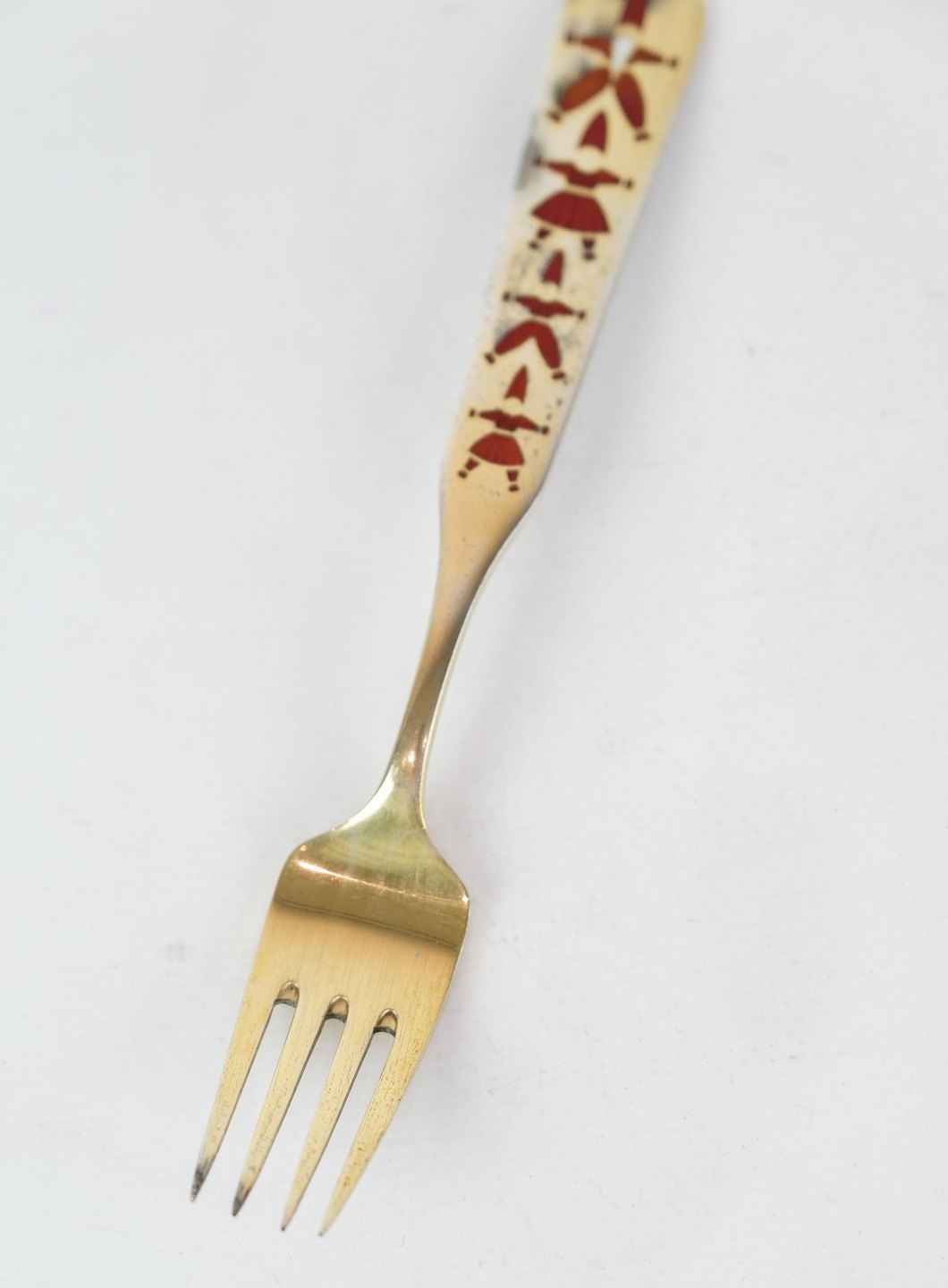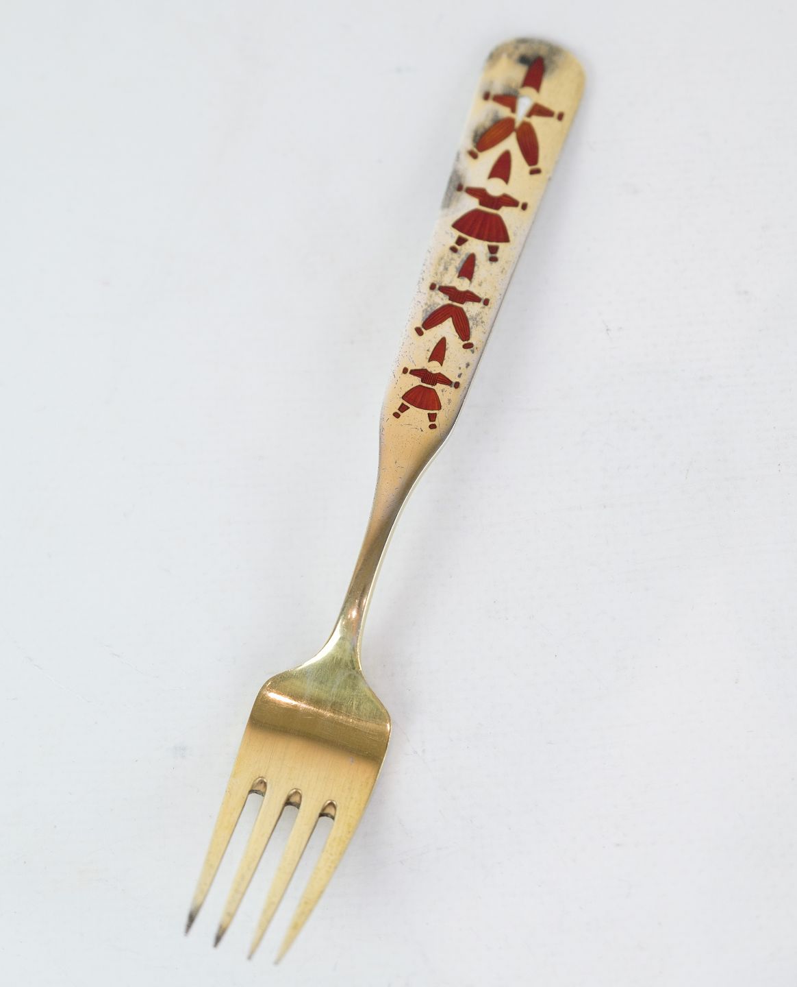 Christmas fork from 1957, designed by Erik Ellegaard Frederiksen and made of sterling silver 925 with stamp A. Michelsen. Anton Michelsen is a renowned Danish goldsmith's workshop, and this Christmas fork will be a valuable and stylish accessory for your Christmas decoration or collection of vintage silverware.