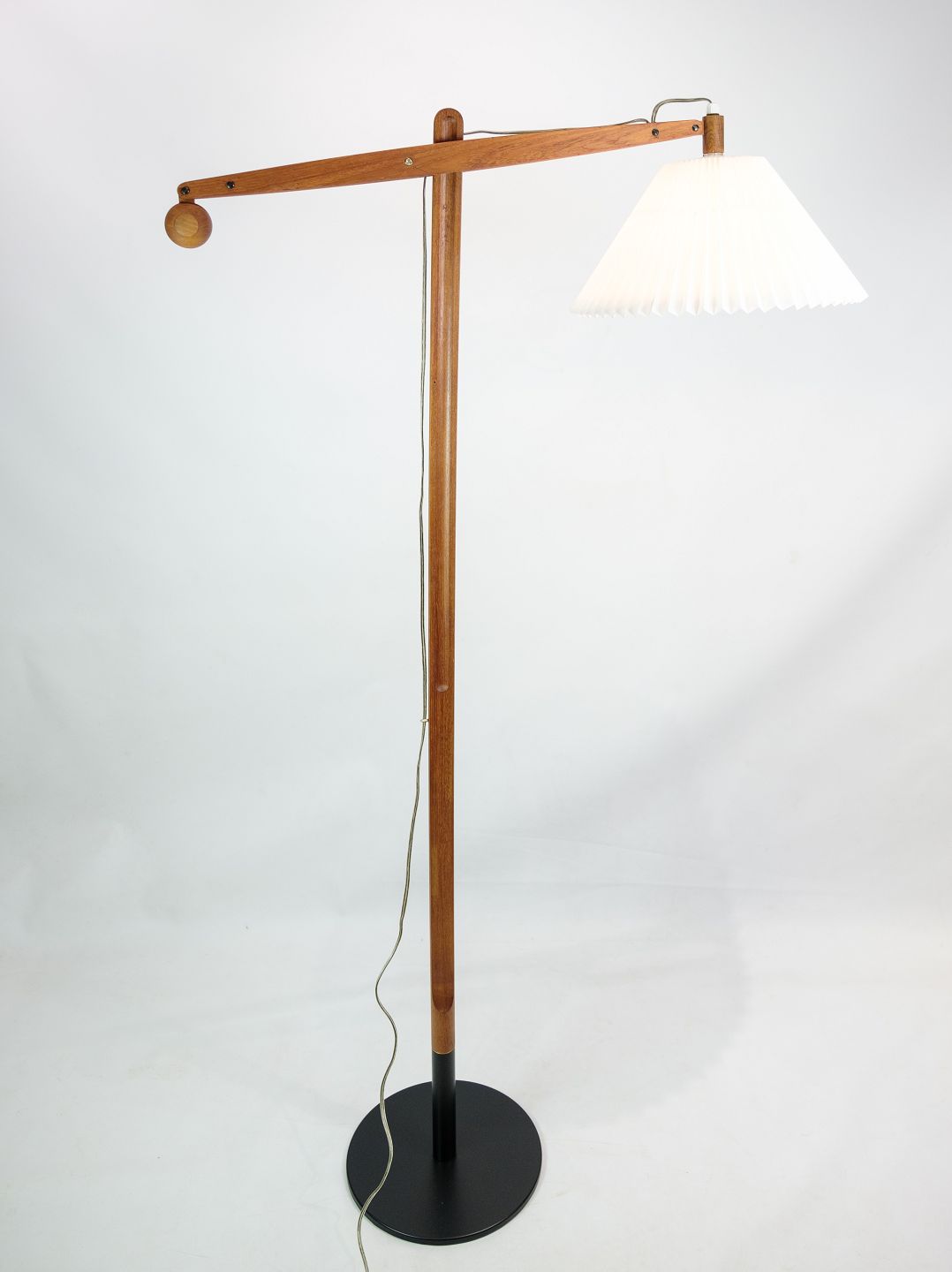 Floor lamp, model 325 by Le Klint, designed by Vilhelm Wohlert in teak wood with original shade from around the 1950s, Denmark