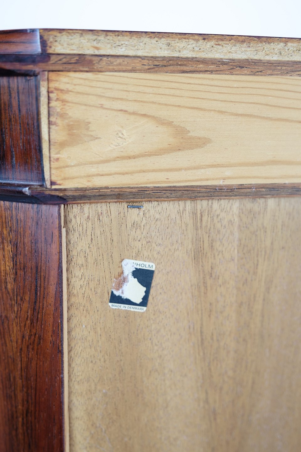 Møblet er udstyret med en frontlåge, der kan åbnes og afsløre hylder bagved, som giver rigelig opbevaringsplads til dine personlige genstande. Den smukke palisandertrækonstruktion er solid og holdbar, og dens naturlige farve og tekstur er smukt fremhævet af en blød og blank overflade.