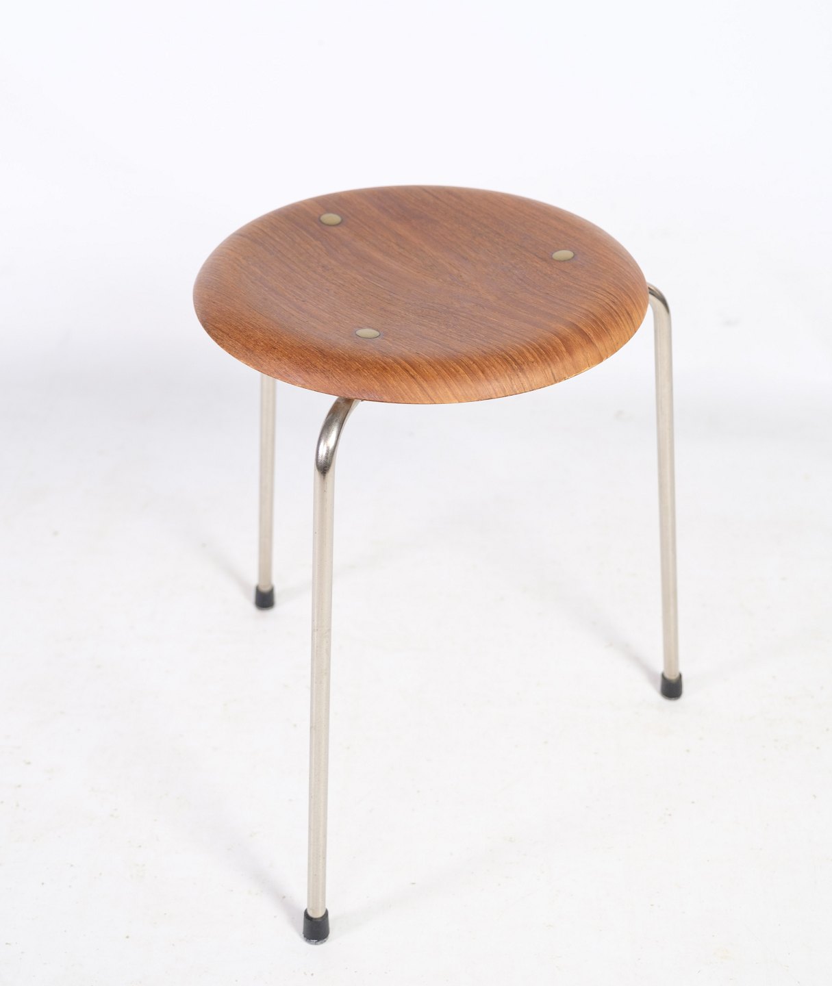 SoldThis elegant stool with three legs was designed by the famous Danish architect and designer Arne Jacobsen and was manufactured by Fritz Hansen in the 1960s. The stool is an early model and shows Arne Jacobsen's talent for simplicity and functionality.