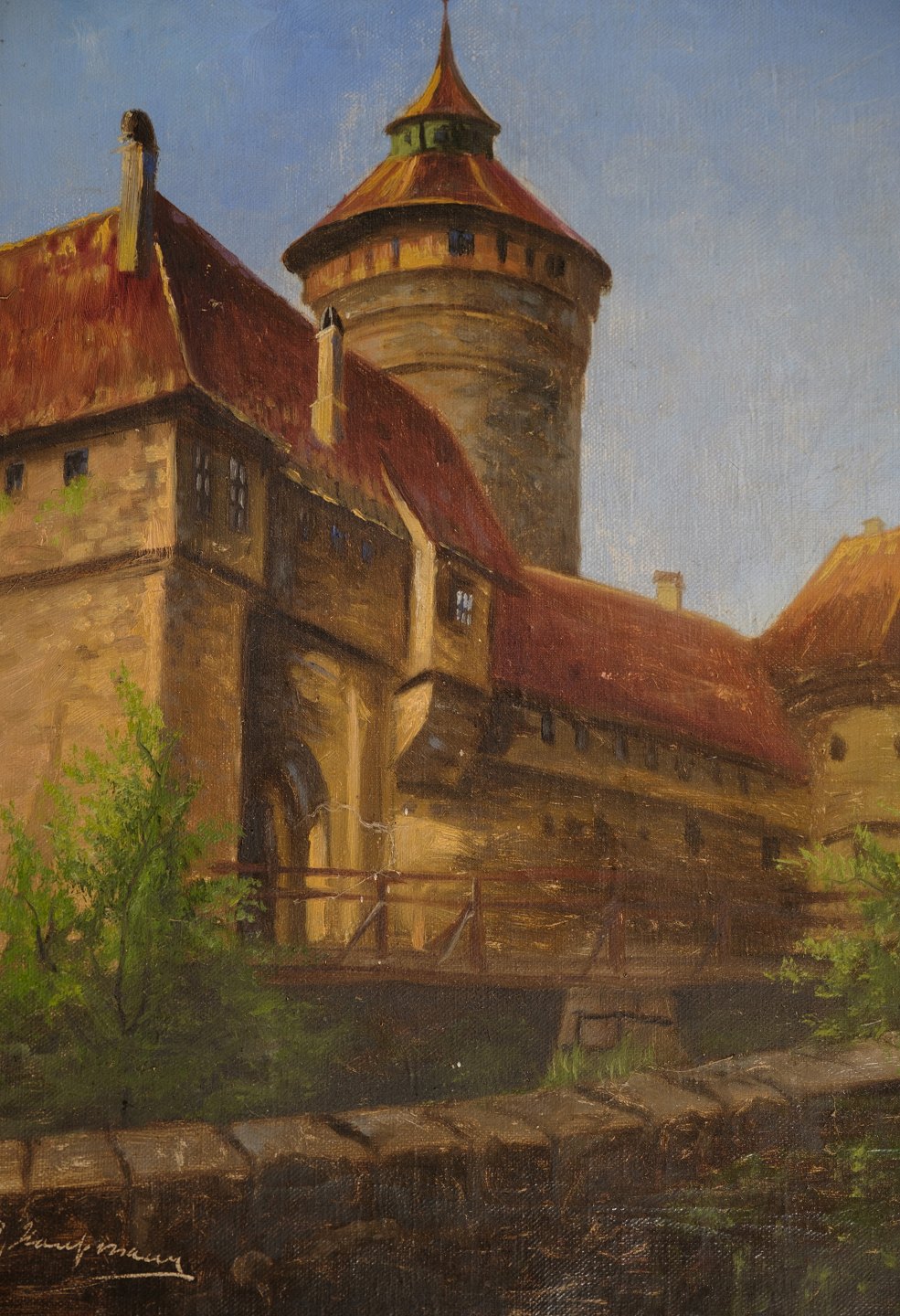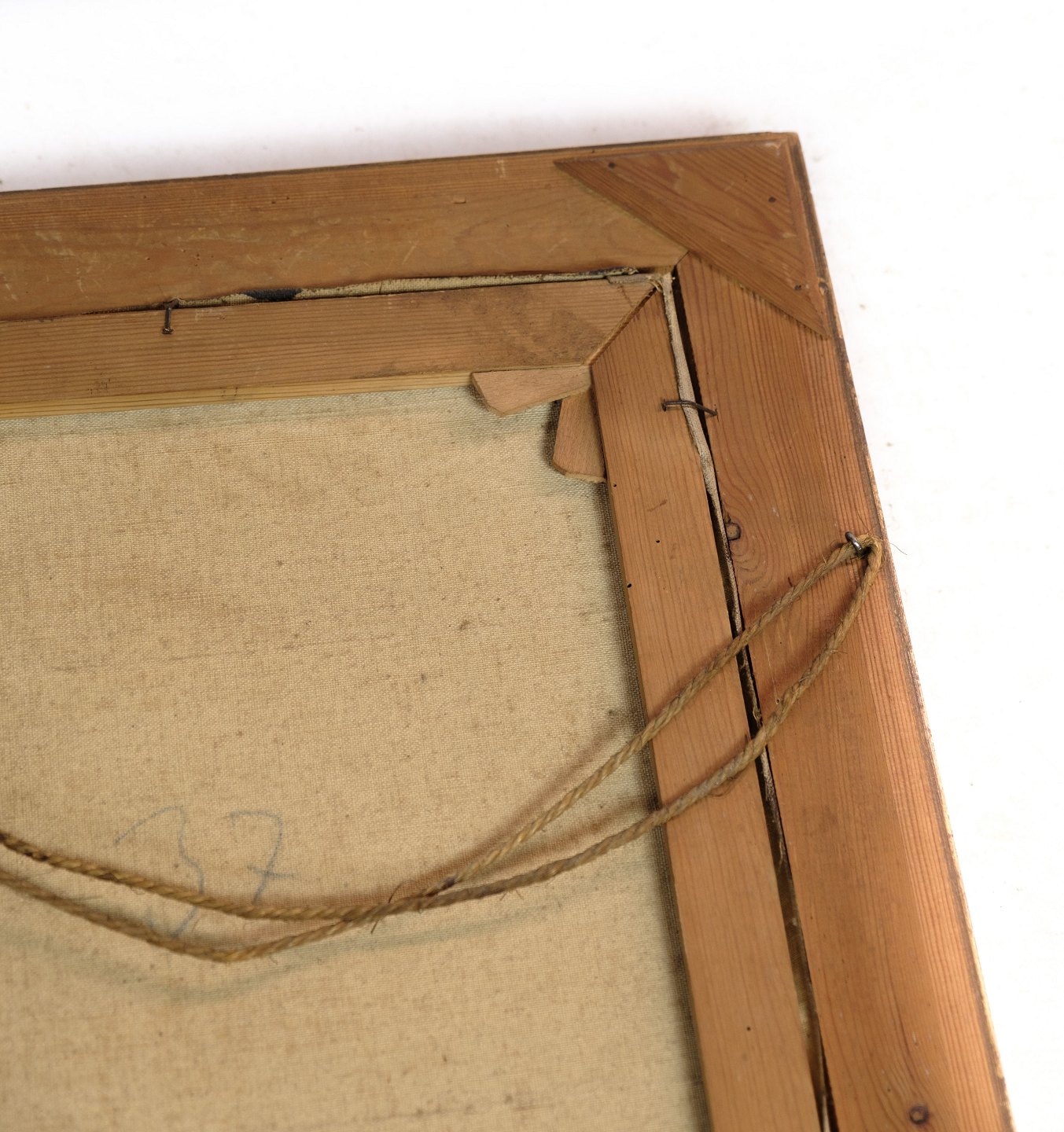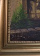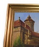 Painting, canvas, gold frame, church motif, 1930, 52.5x44.5