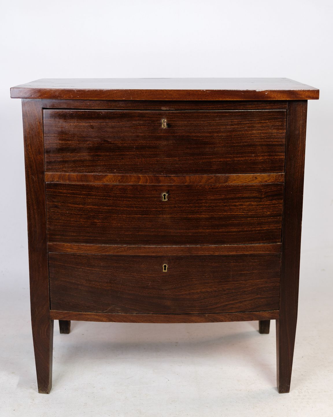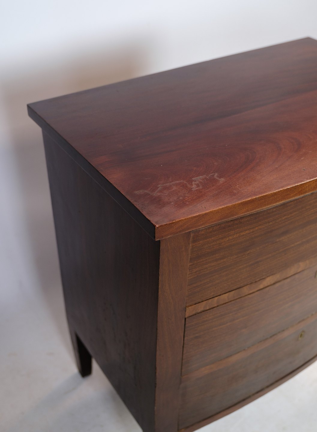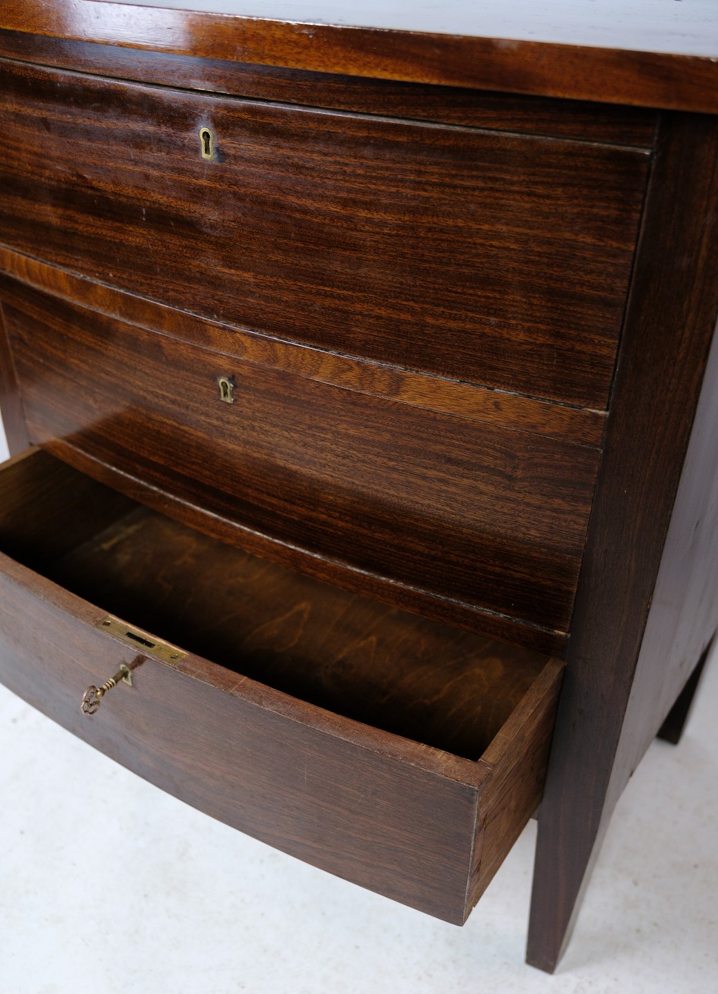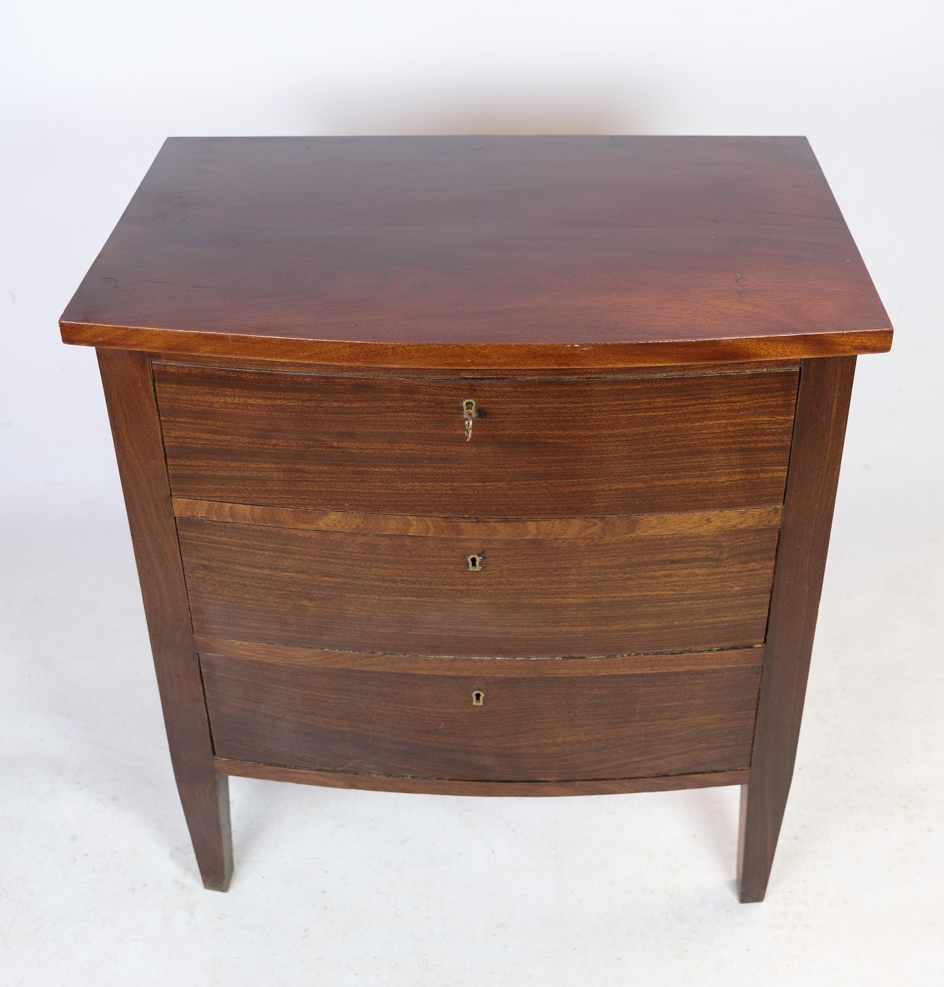 Curved chest of drawers made of mahogany and three drawers, in nice antique condition from the 1890s.