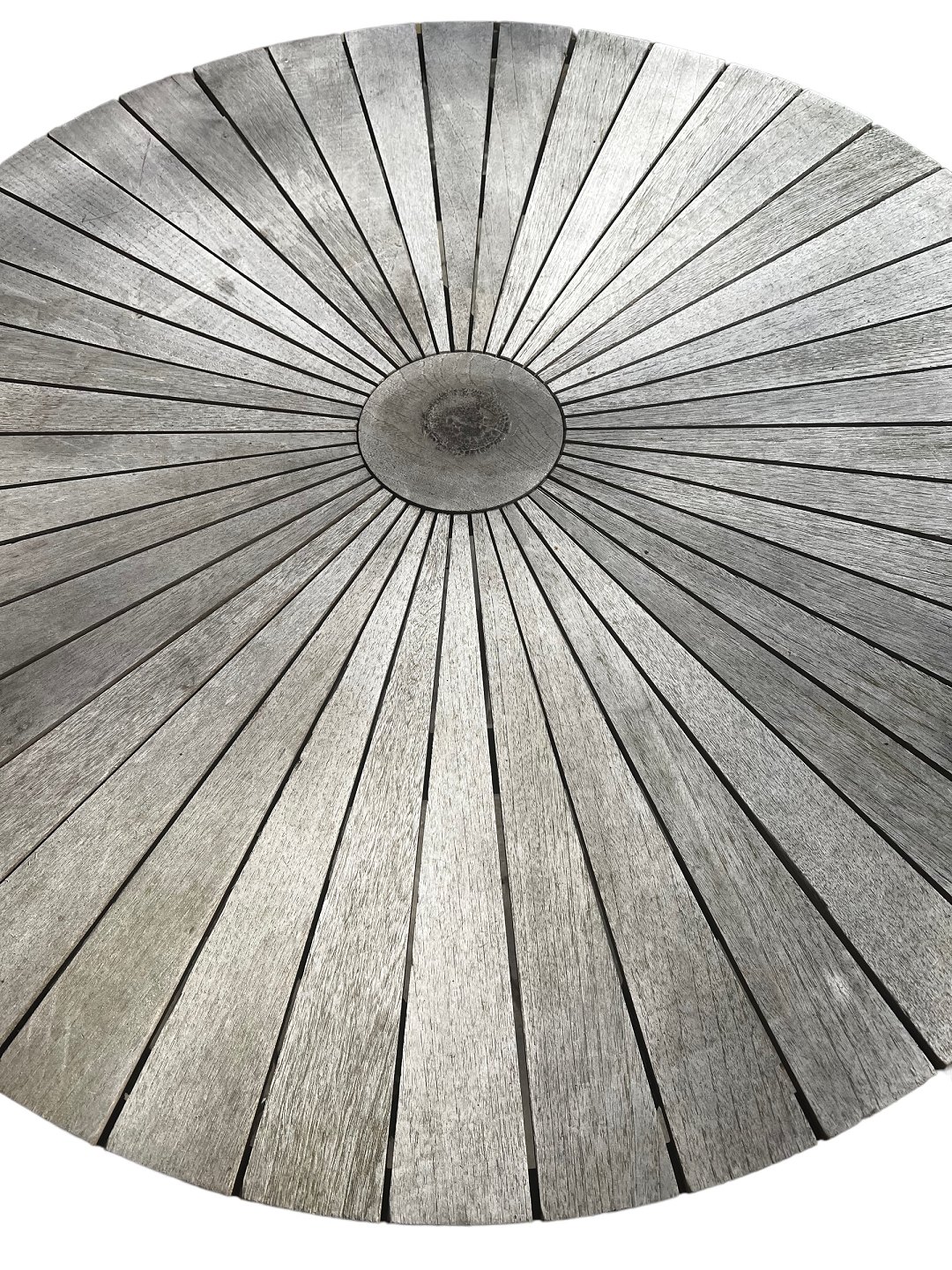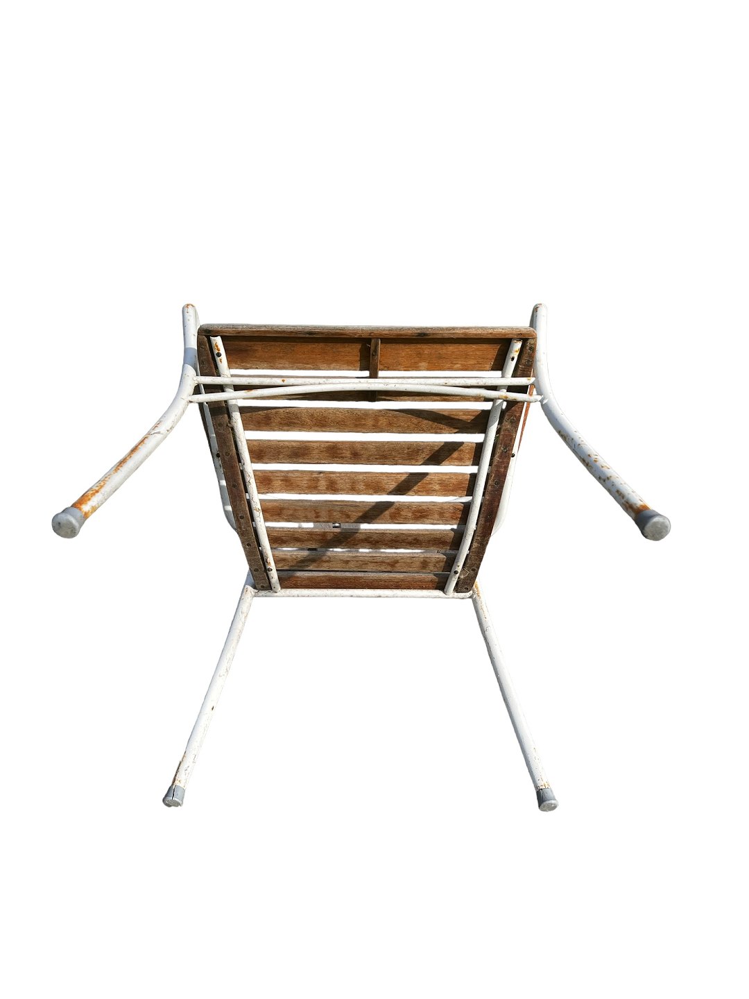 An original set of four marguerite chairs and table in bleached teak wood and metal from around the 1950s. In fine original condition.