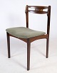 Sæt af 12 spisestuestole af palisander med grønt stof fra omkring 1960'erne. Et sæt stole af høj kvalitet og håndværksmæssig arbejde. De står alle i meget fin stand i både stof og træ. Sjældent udbudt.