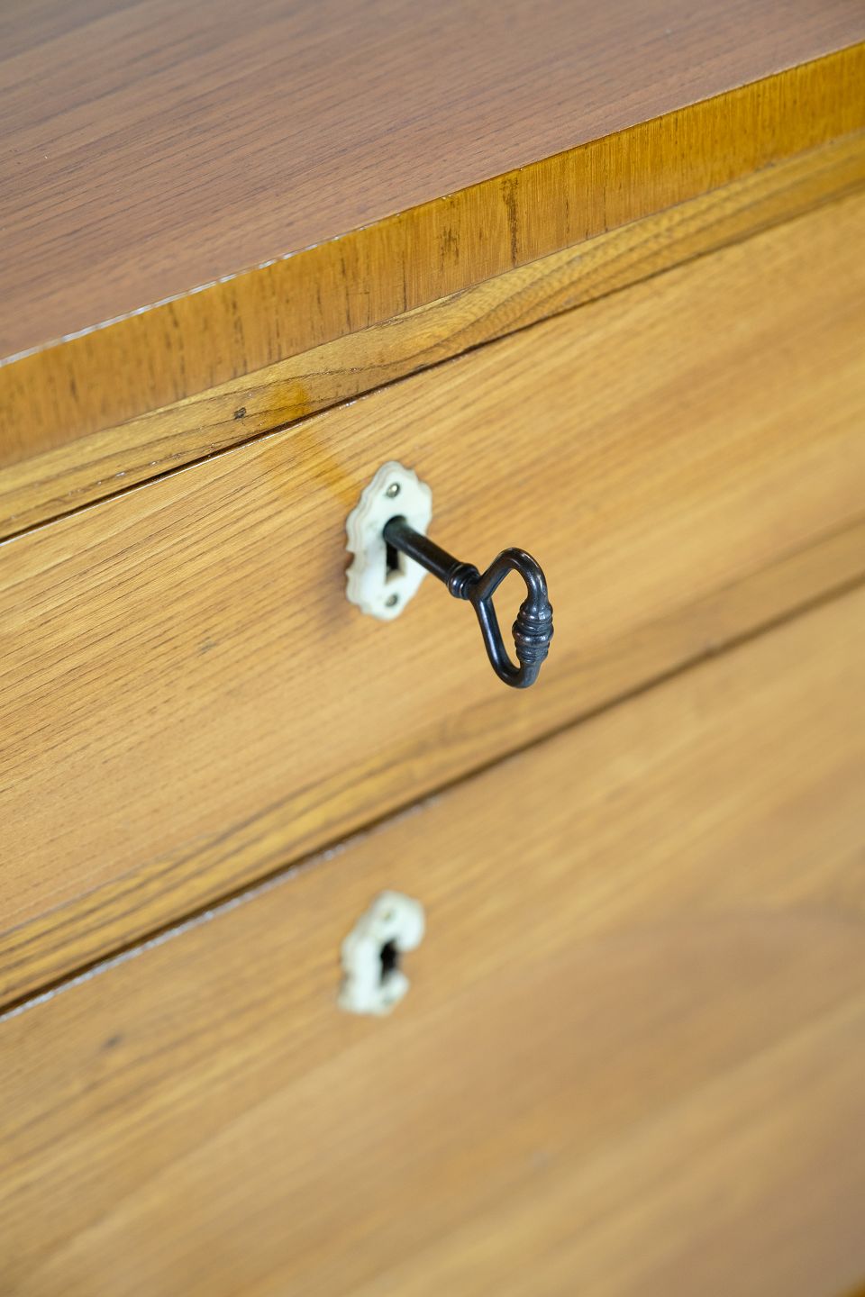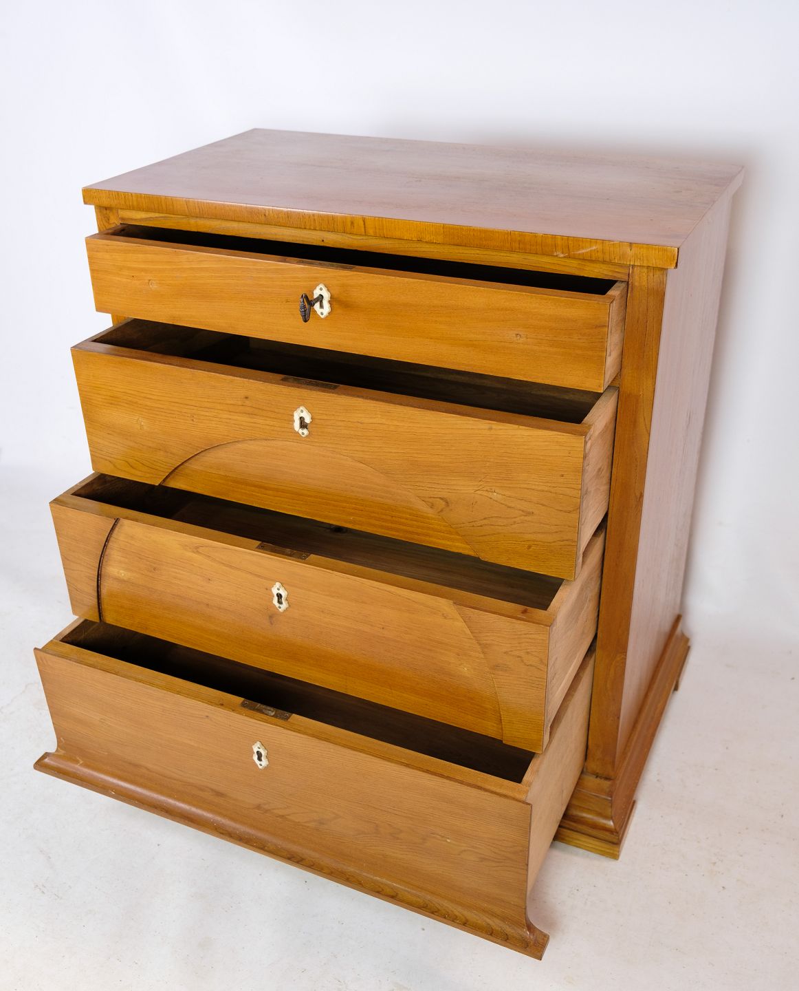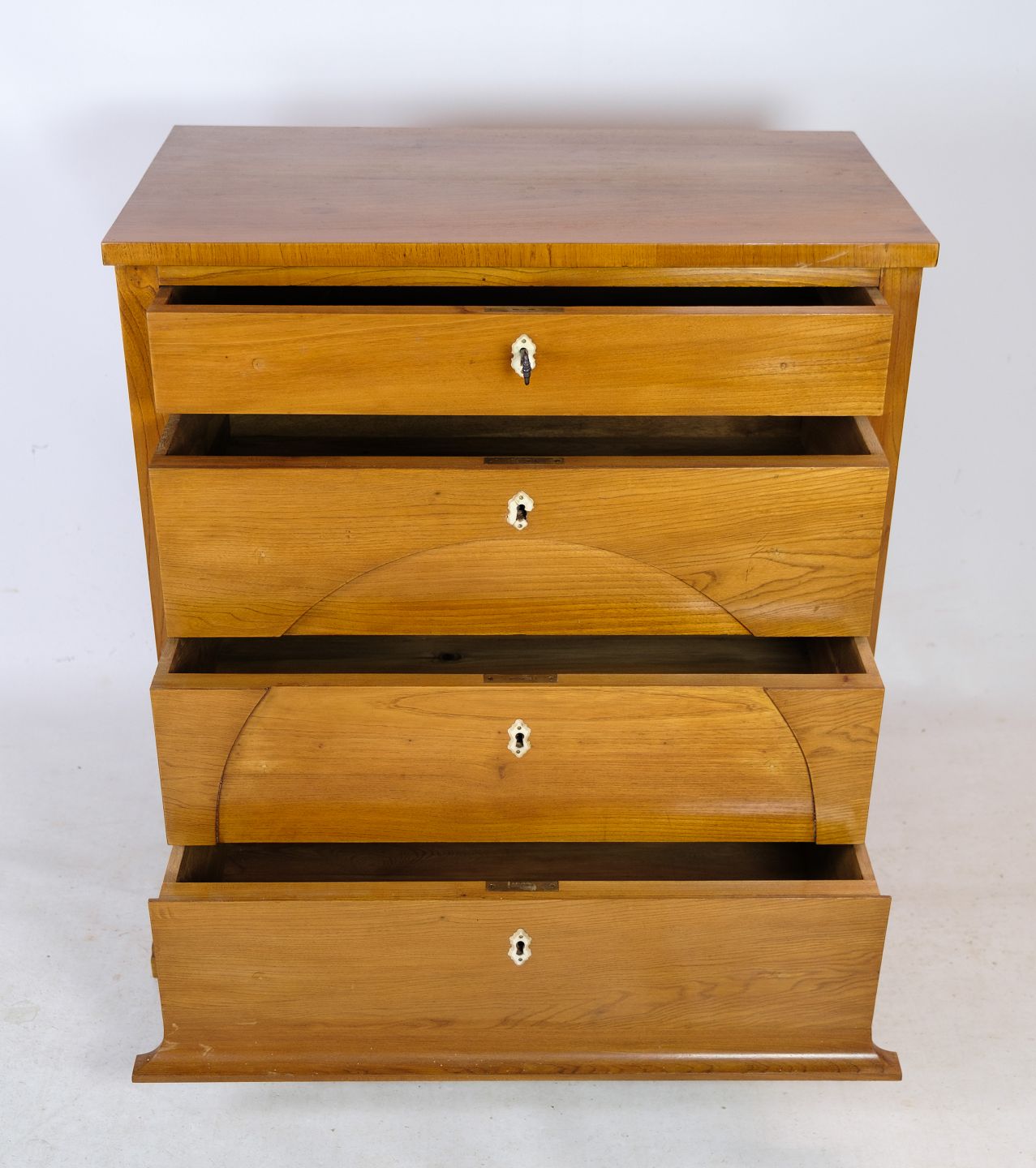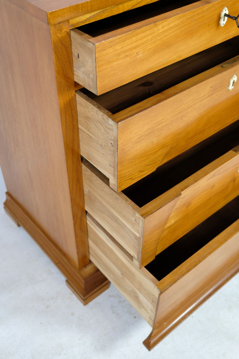 SoldChest of drawers in elm wood restored mock-polished Empia style from around the year 1840s.