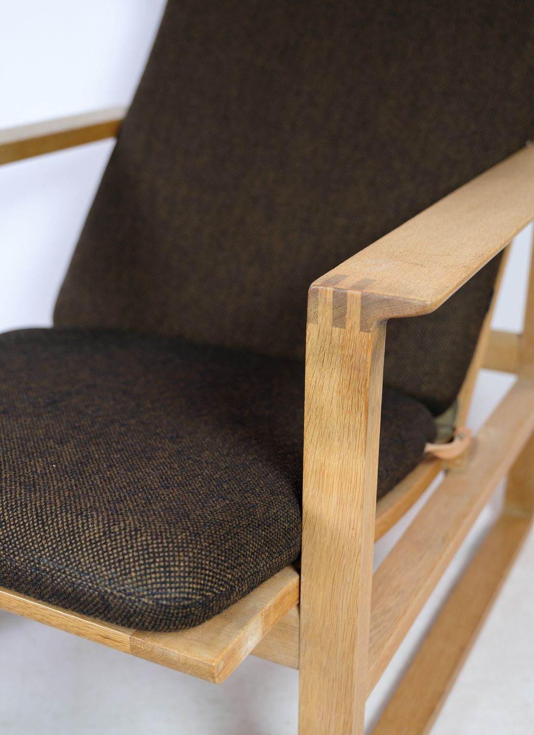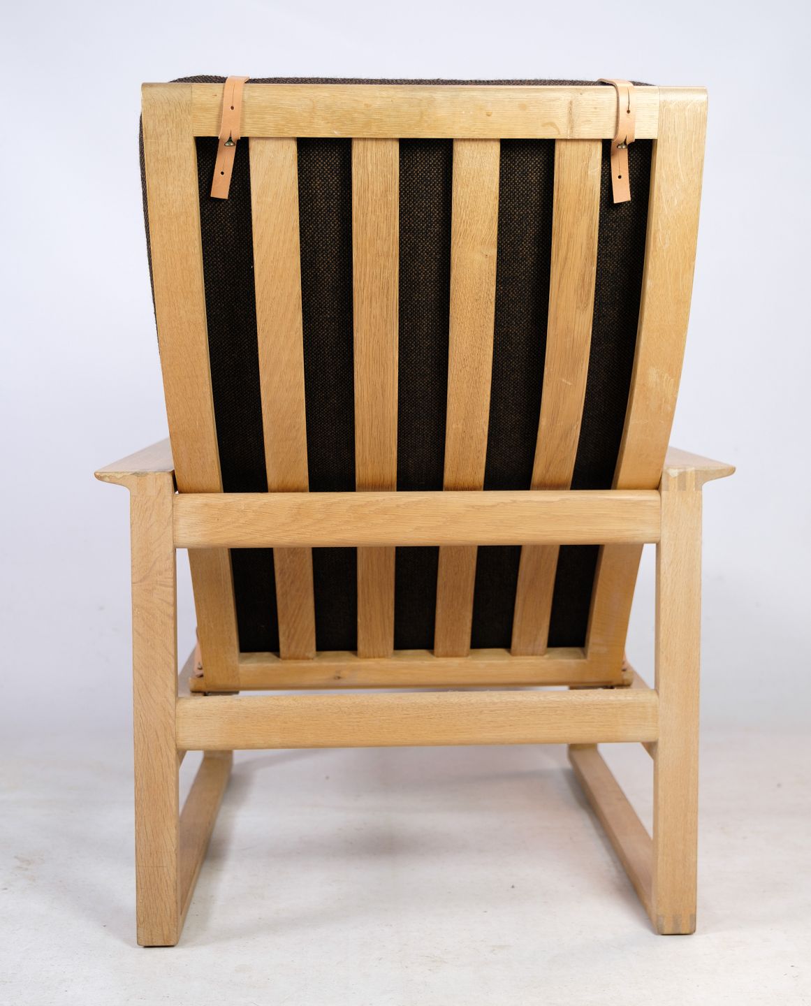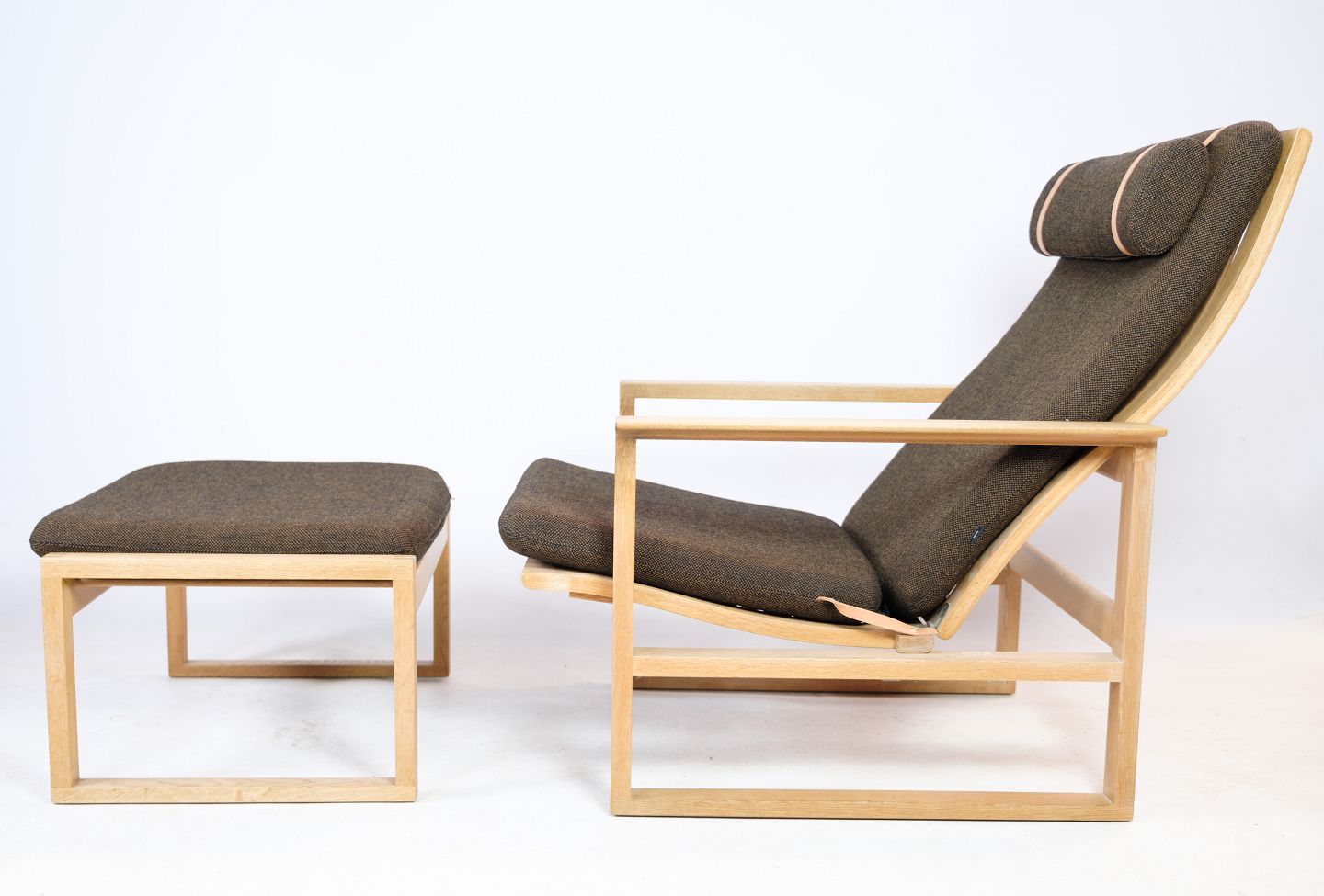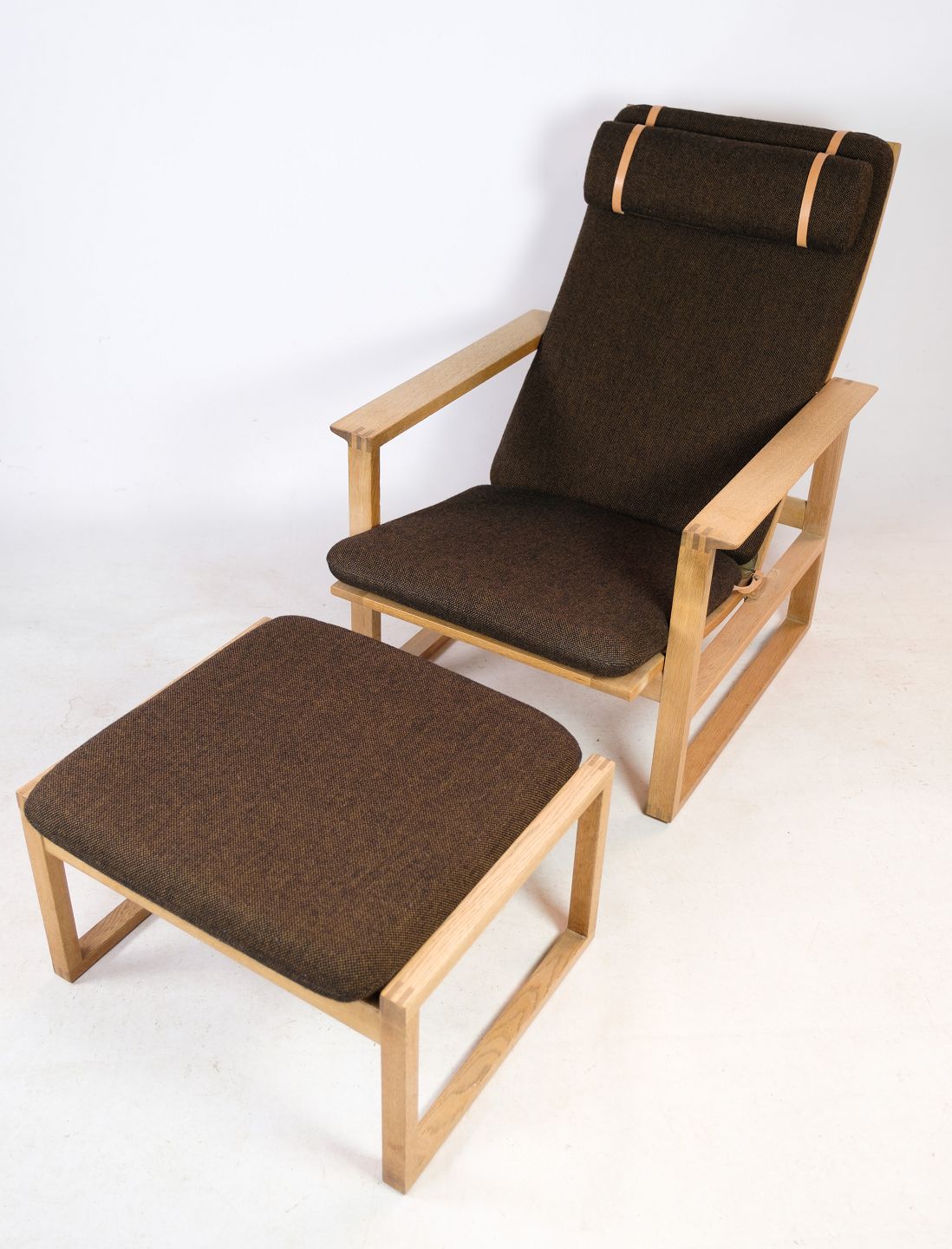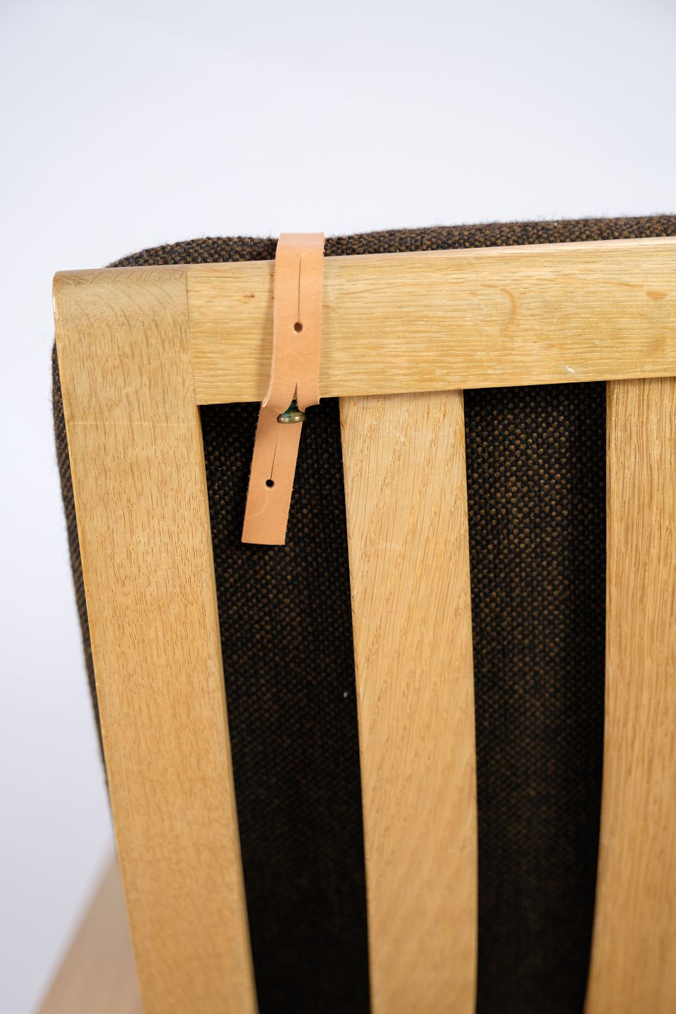 Børge Mogensen was a Danish furniture designer who lived from 1914 to 1972. He was known for his functional and minimalist designs, which were often made from natural materials. One of his iconic designs was the high-backed sled chair, as well as the ottoman made of oak, which was designed to have adjustable backrests, seat, back cushion and neck cushion upholstered in wool. This chair is manufactured by Fredericia Stolefabrik and is known as Model 2254.