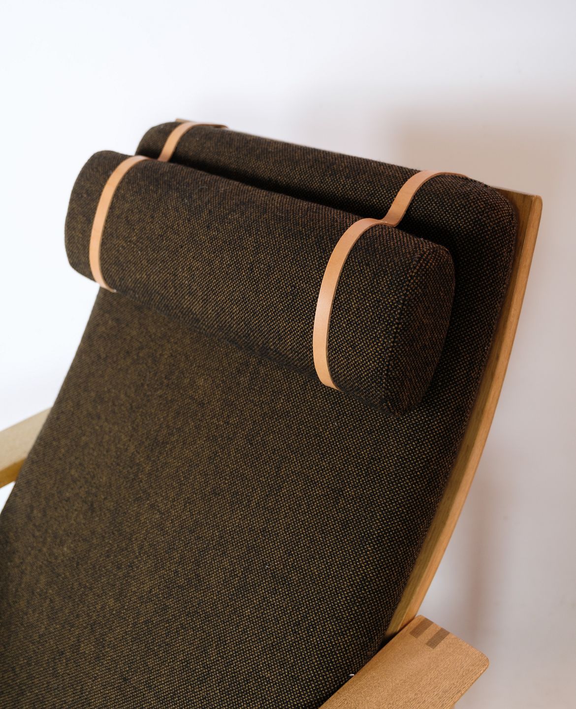 The chair is characterized by its slim and simple design, which combines function and comfort. The high backrest and adjustable angles allow for different sitting positions, making it an ideal choice for reading or relaxing. The chair's seat, backrest and neck pillow are covered with wool, which provides both warmth and softness. The use of oak adds a touch of warmth and natural beauty to the chair.