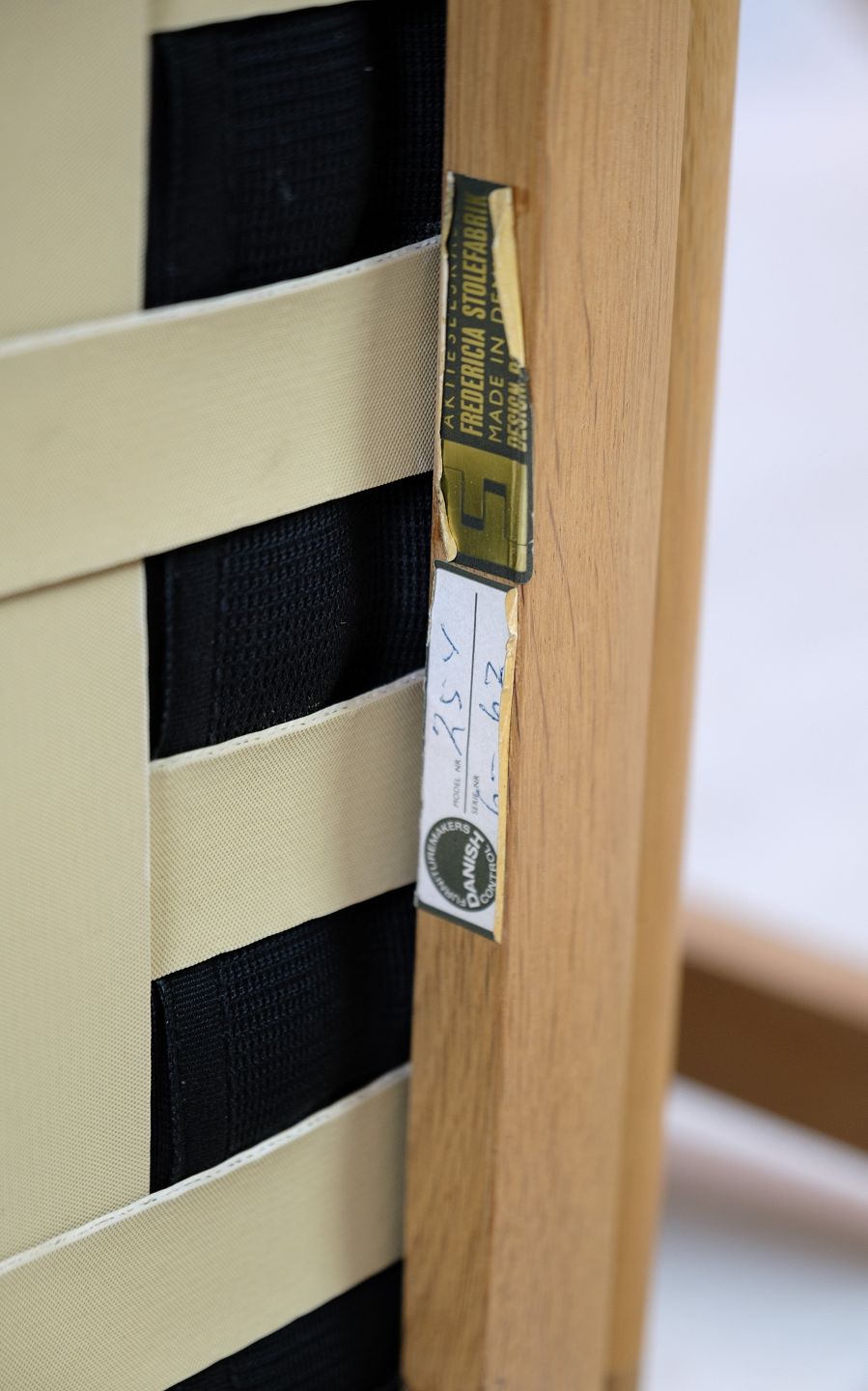 The chair is still highly sought after by collectors and design enthusiasts today, and is considered a classic example of Danish design. Its appearance with minor signs of use is normal for a vintage piece of furniture and this adds to its charm and character. The chair is mentioned and described in Per H. Hansen's book "Den store Danske Møbelguide" on page 243.