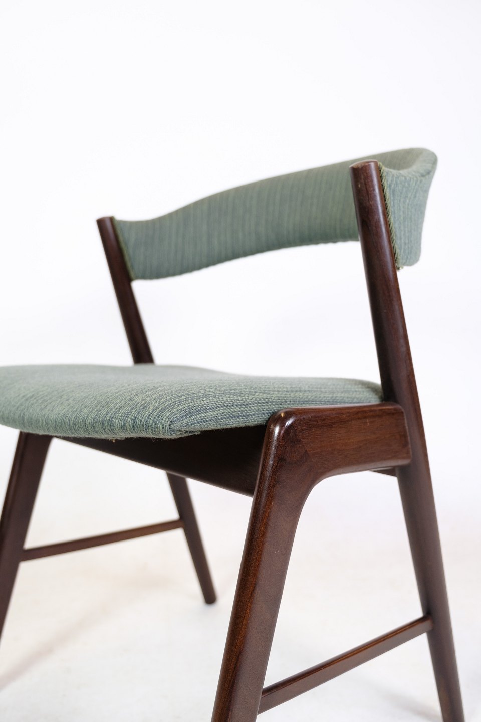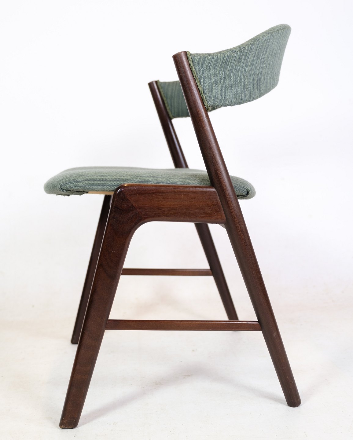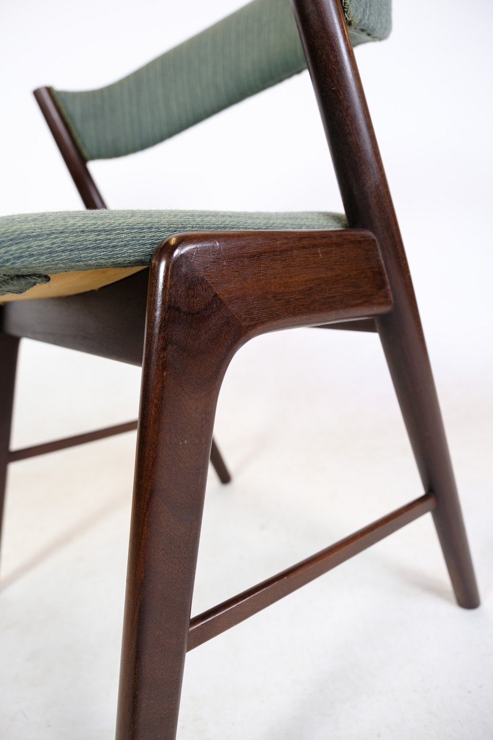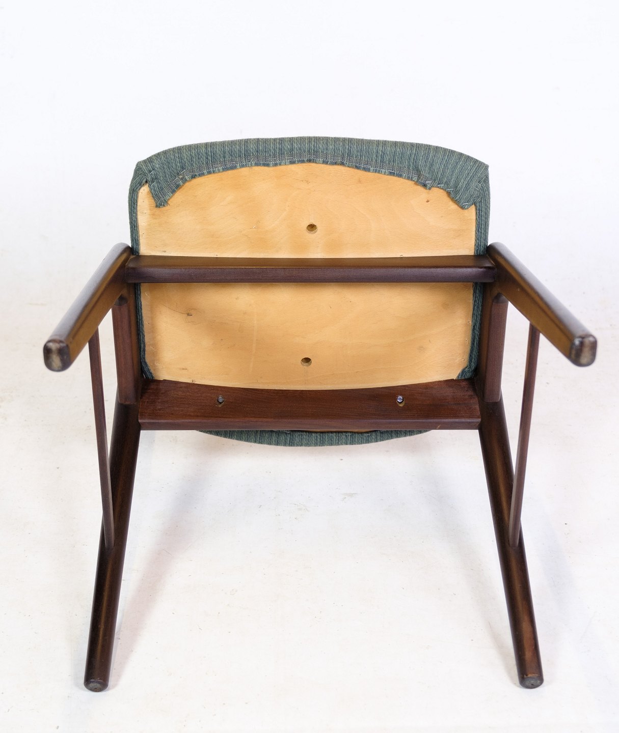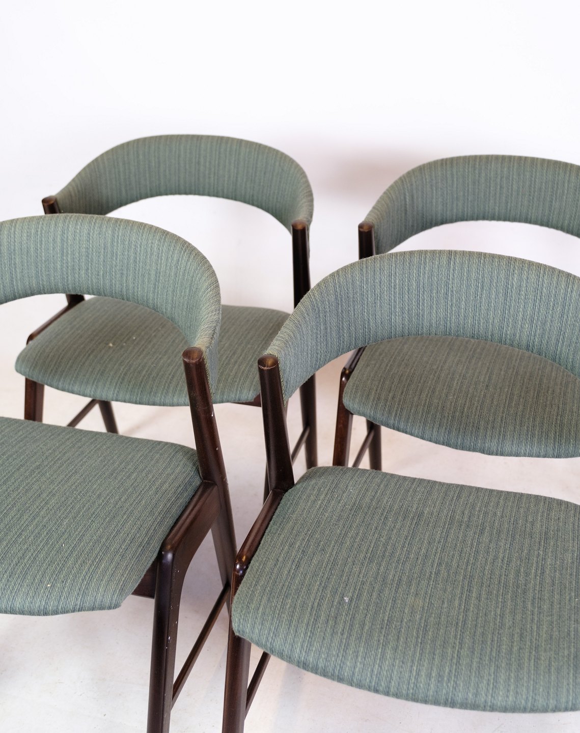 Set of 4 armchairs in teak wood, of Danish design from around the 1960s. The chairs are in nice blue fabric in very good condition.
