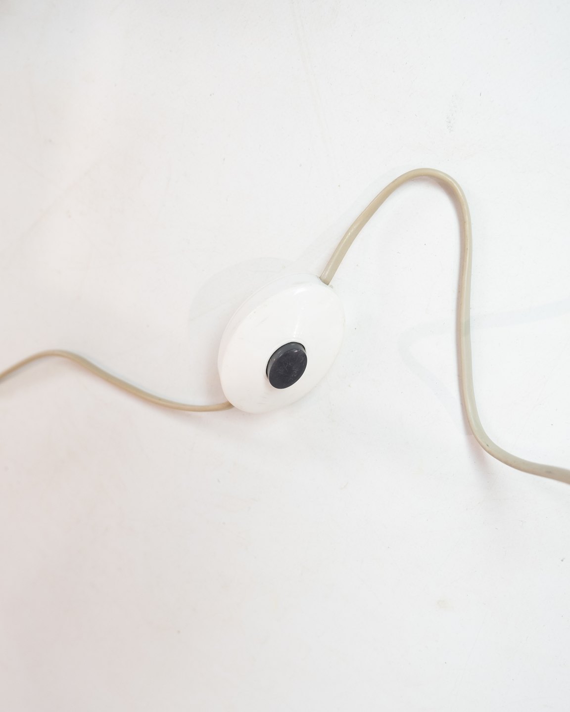The white lacquered metal finish gives the lamp a modern and clean look that fits well with various interior themes.