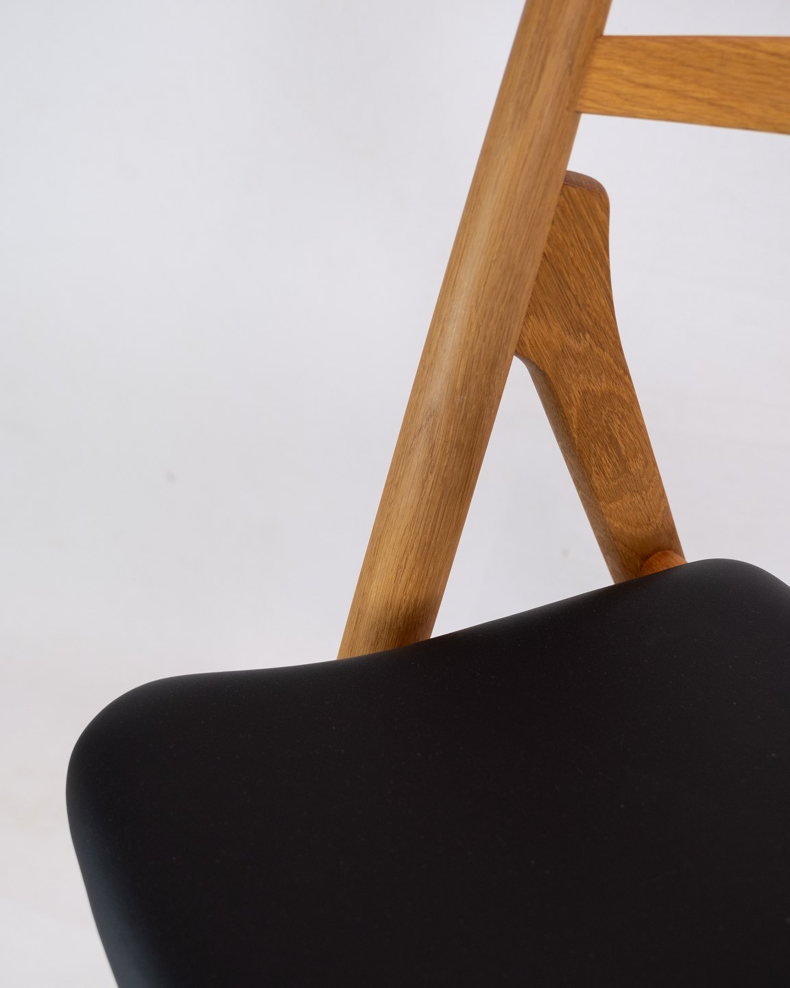 SoldThe chair, model CH29, designed by Hans J. Wegner in oak and black leather, produced by Carl Hansen & Søn, is an iconic and timeless design chair of high quality.