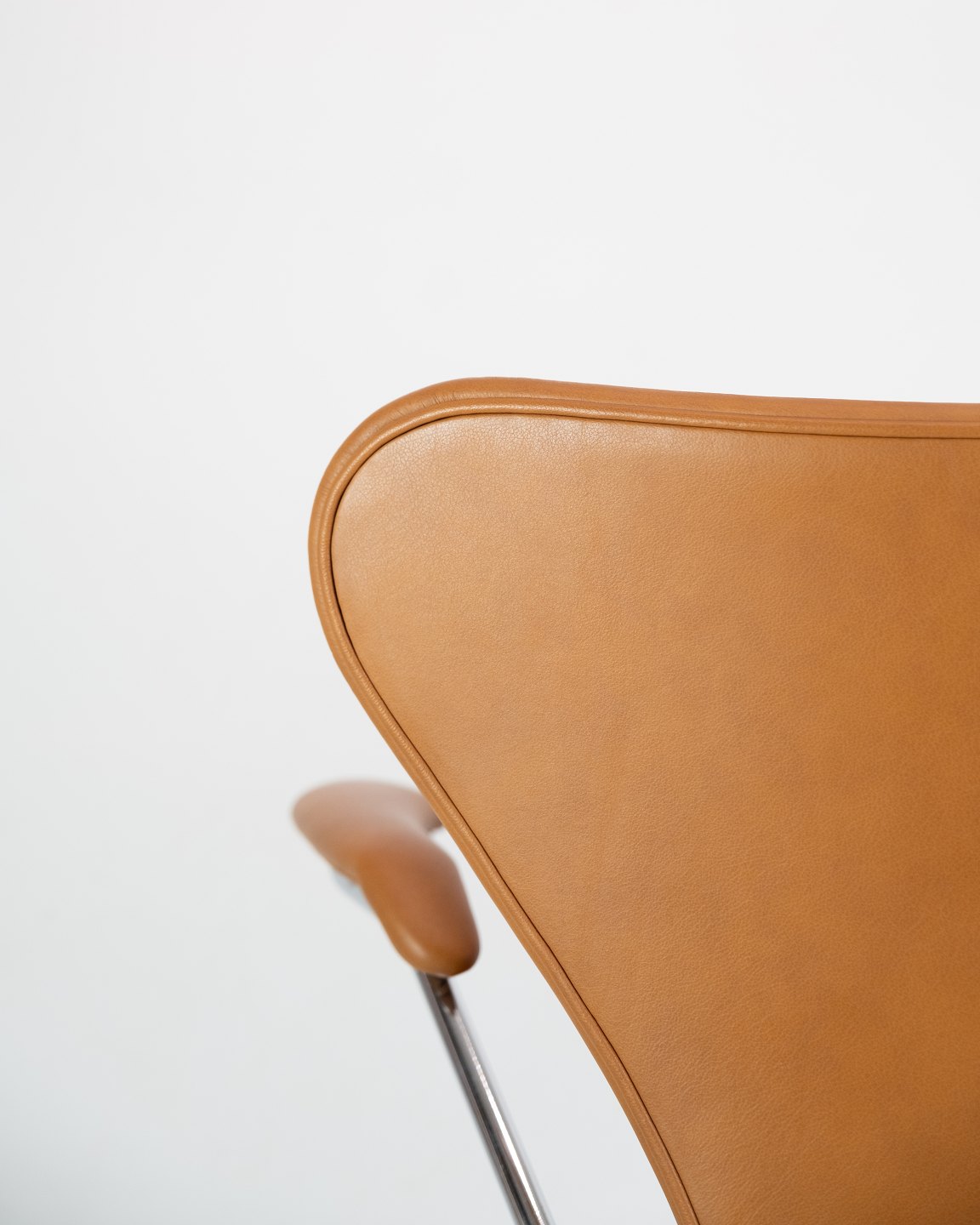 Seven chair with armrests - Model 3207 - Cognac Leather - Arne Jacobsen & Fritz Hansen