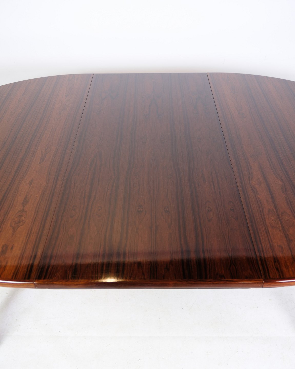 Bordets funktion som spisebord gør det til et centralt møbel i hjemmet. Den naturlige skønhed i palisander og det omhyggelige håndværk, der er lagt i bordets fremstilling, gør det til en indbydende plads til måltider og samlinger.