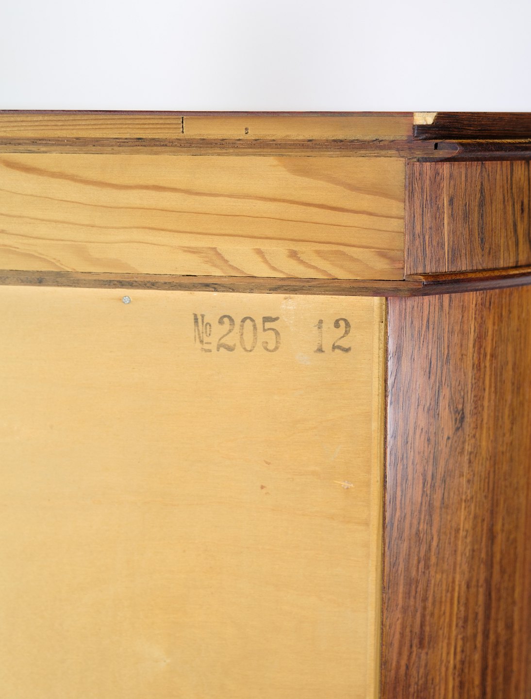 Skabets unikke form og konstruktion tilføjer et strejf af karakter og stil til enhver indretning. Den rige og dybe farve af palisandertræet giver skabet en varm og indbydende atmosfære, mens den glatte overflade og rene linjer fremhæver dets moderne æstetik.