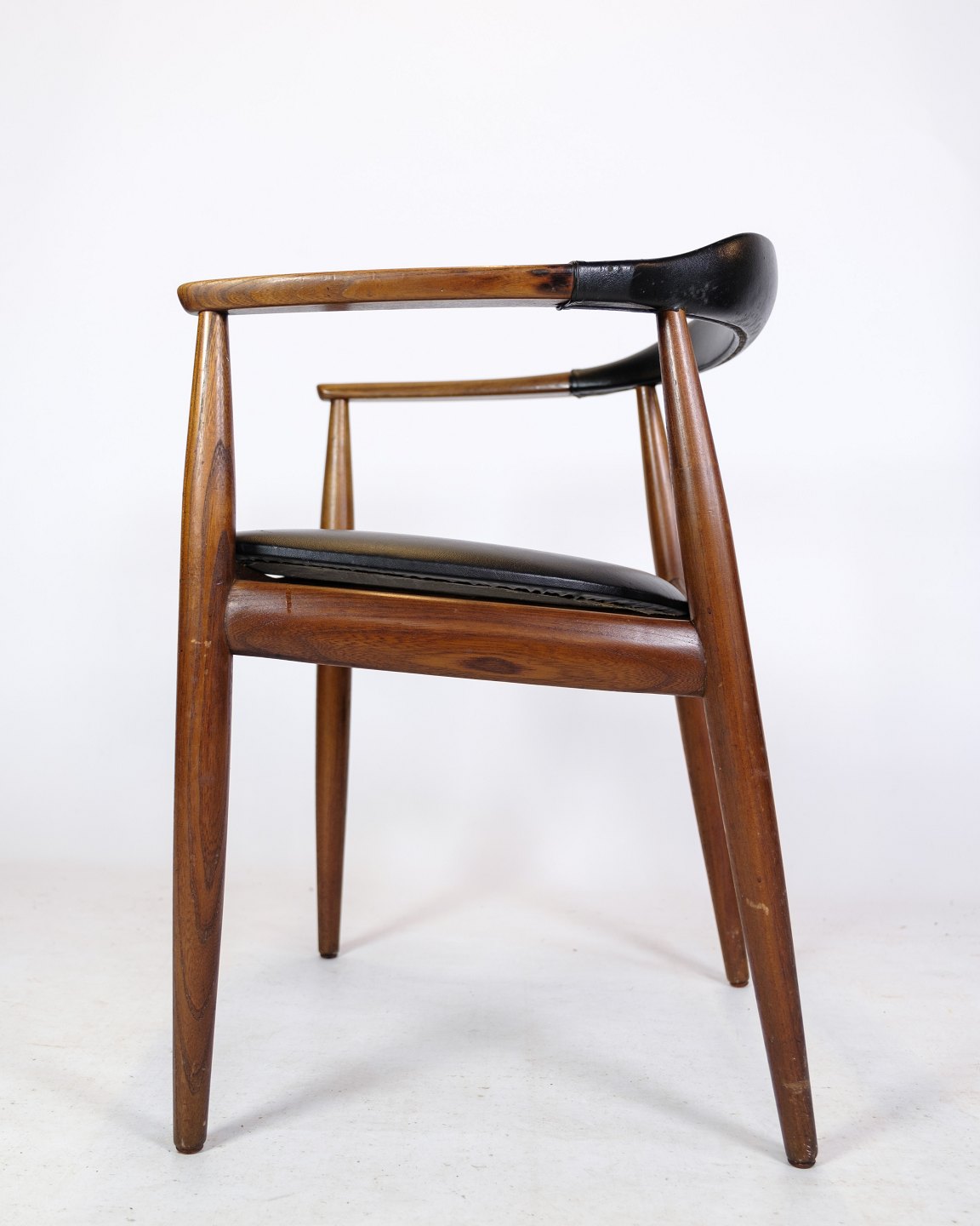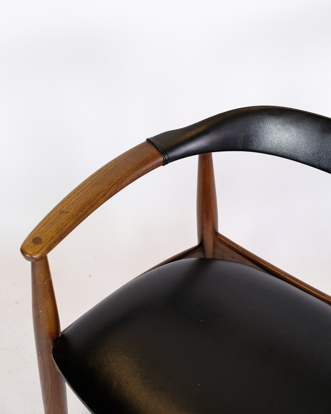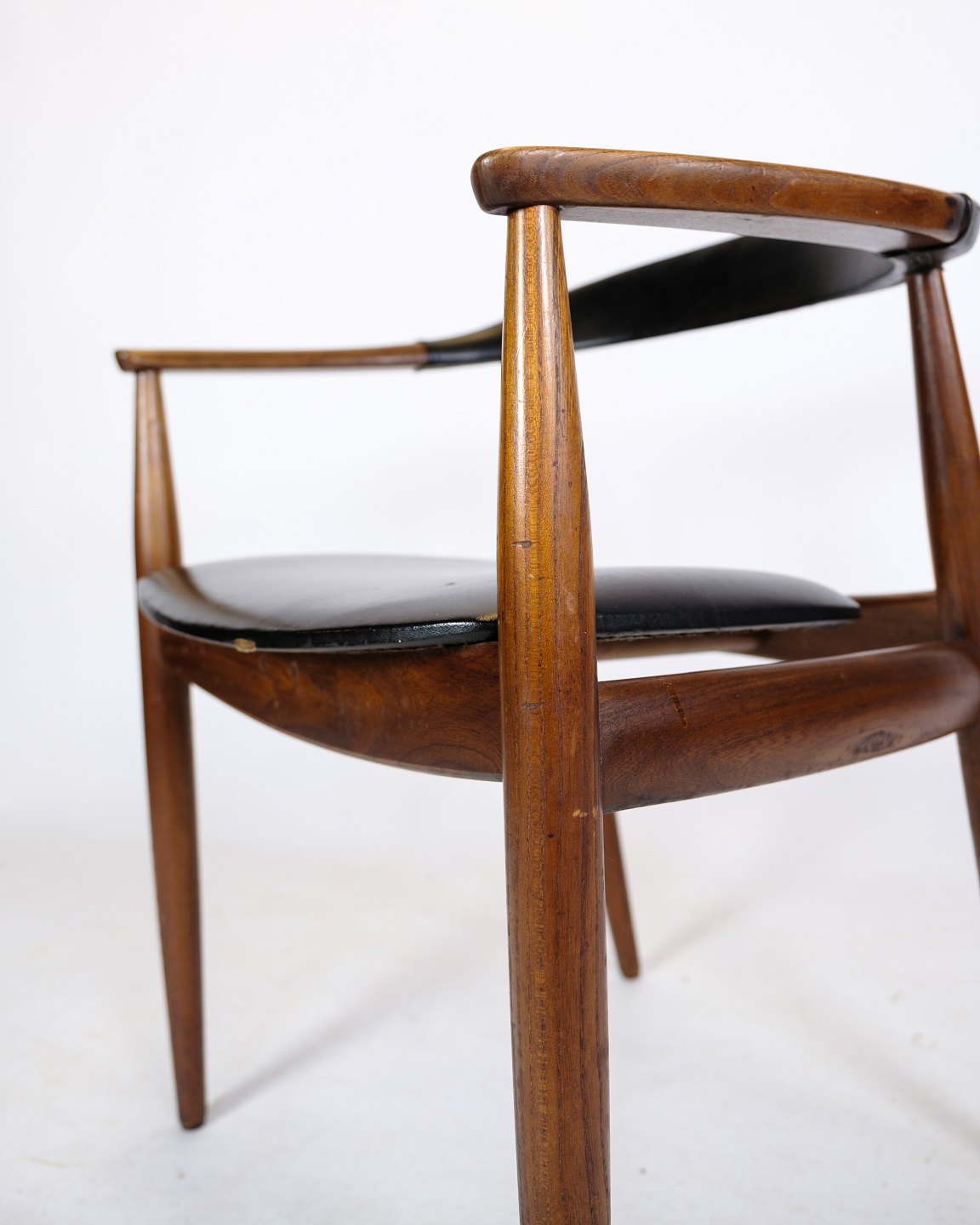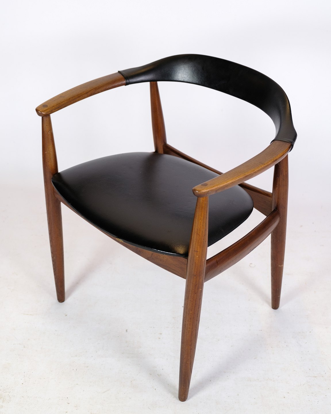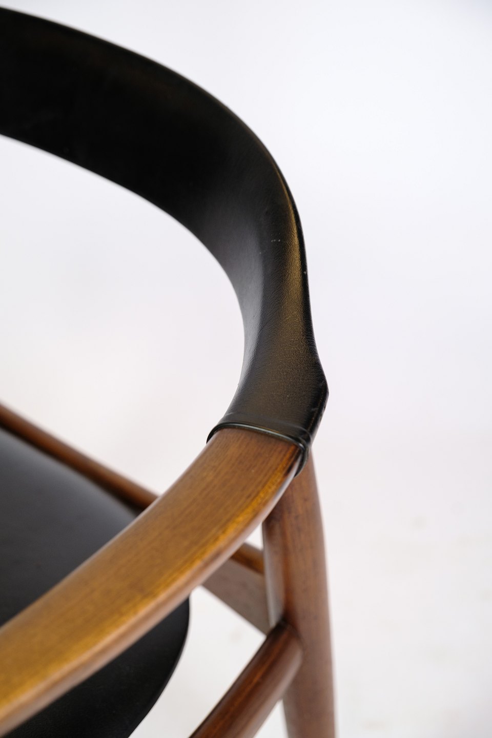 Armchair in teak wood and black artificial leather, designed by Illum Wikkelsø for Niels Eilersen from around the 1960s.
