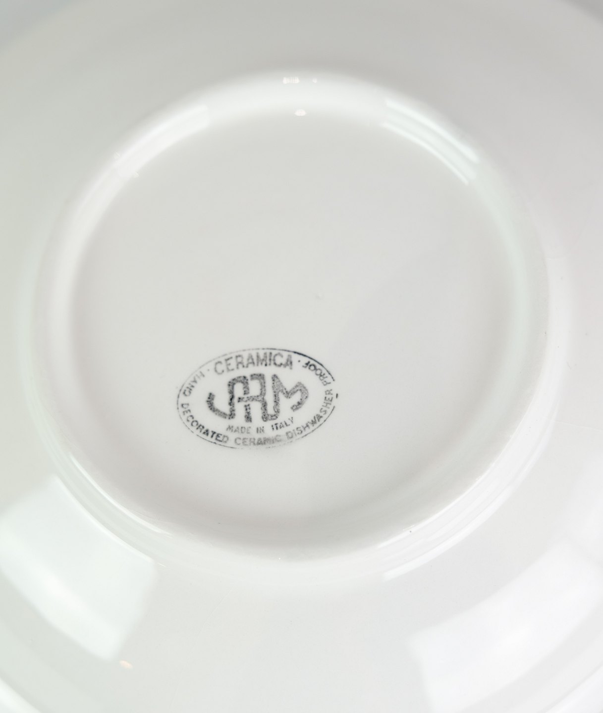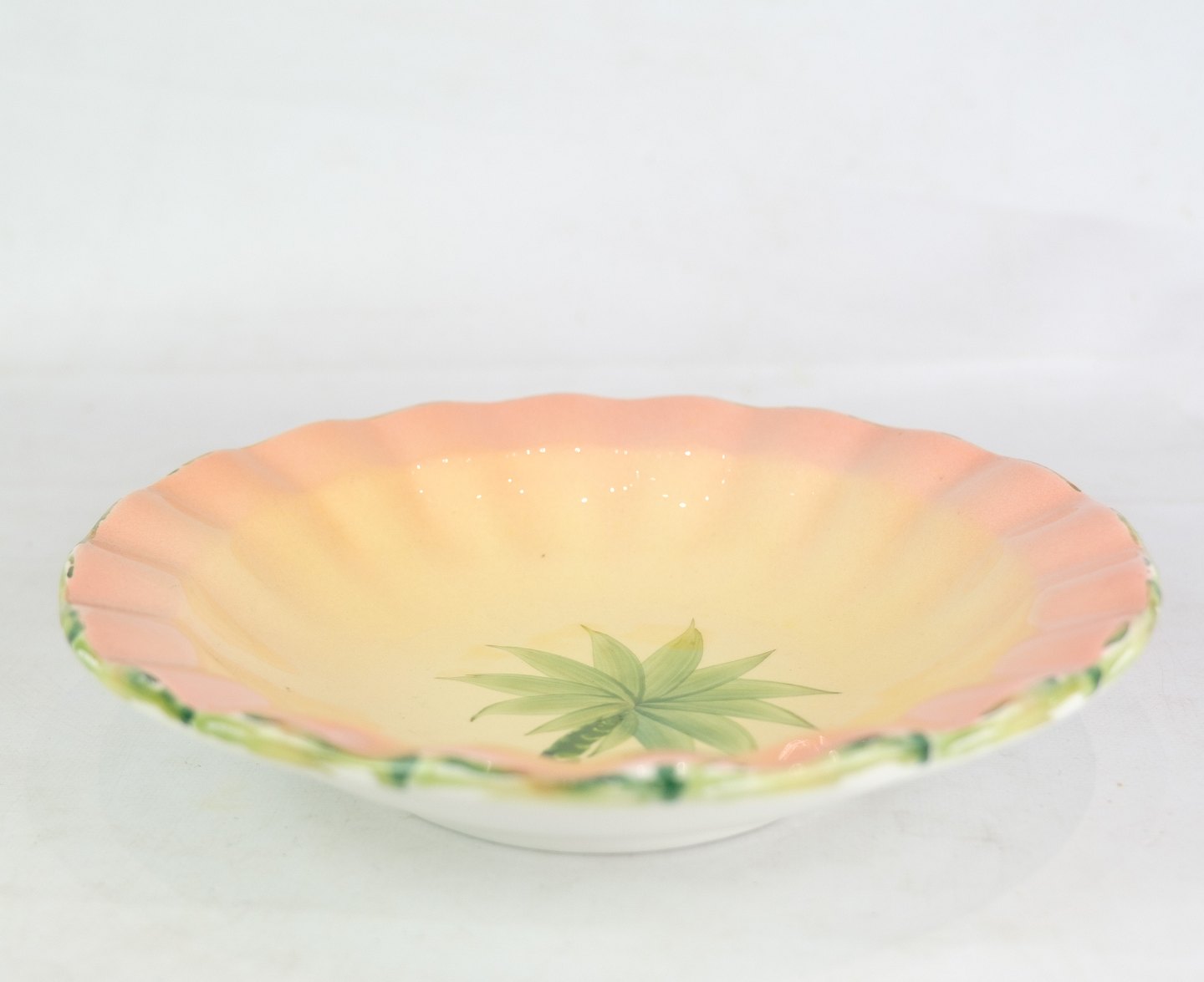 Large pink and sand colored porcelain plate with a motif of a palm tree made in Italy.