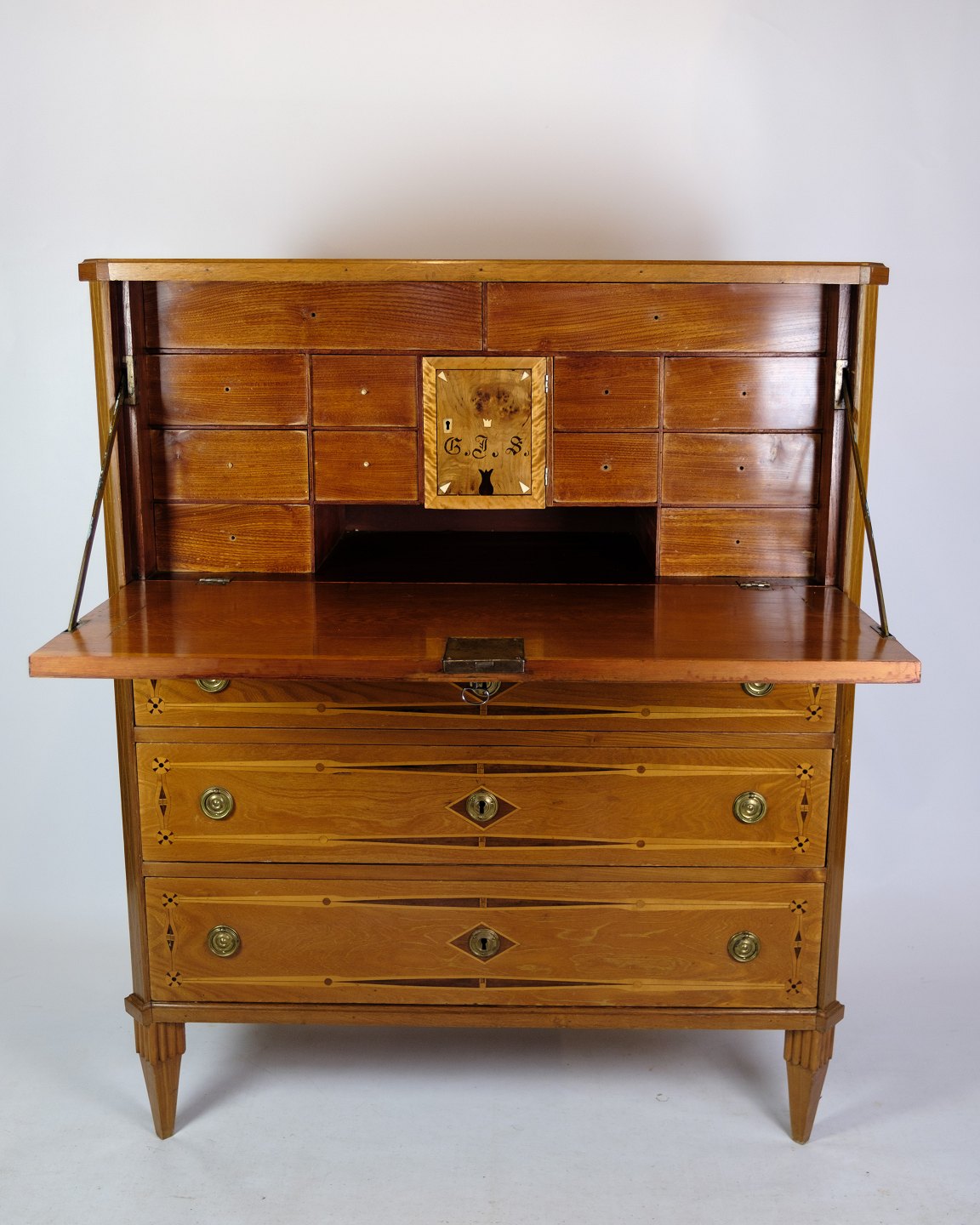 Sekretær - Elmetræ - Intarsia af Frugt træ - Messing Håndtag - 1810