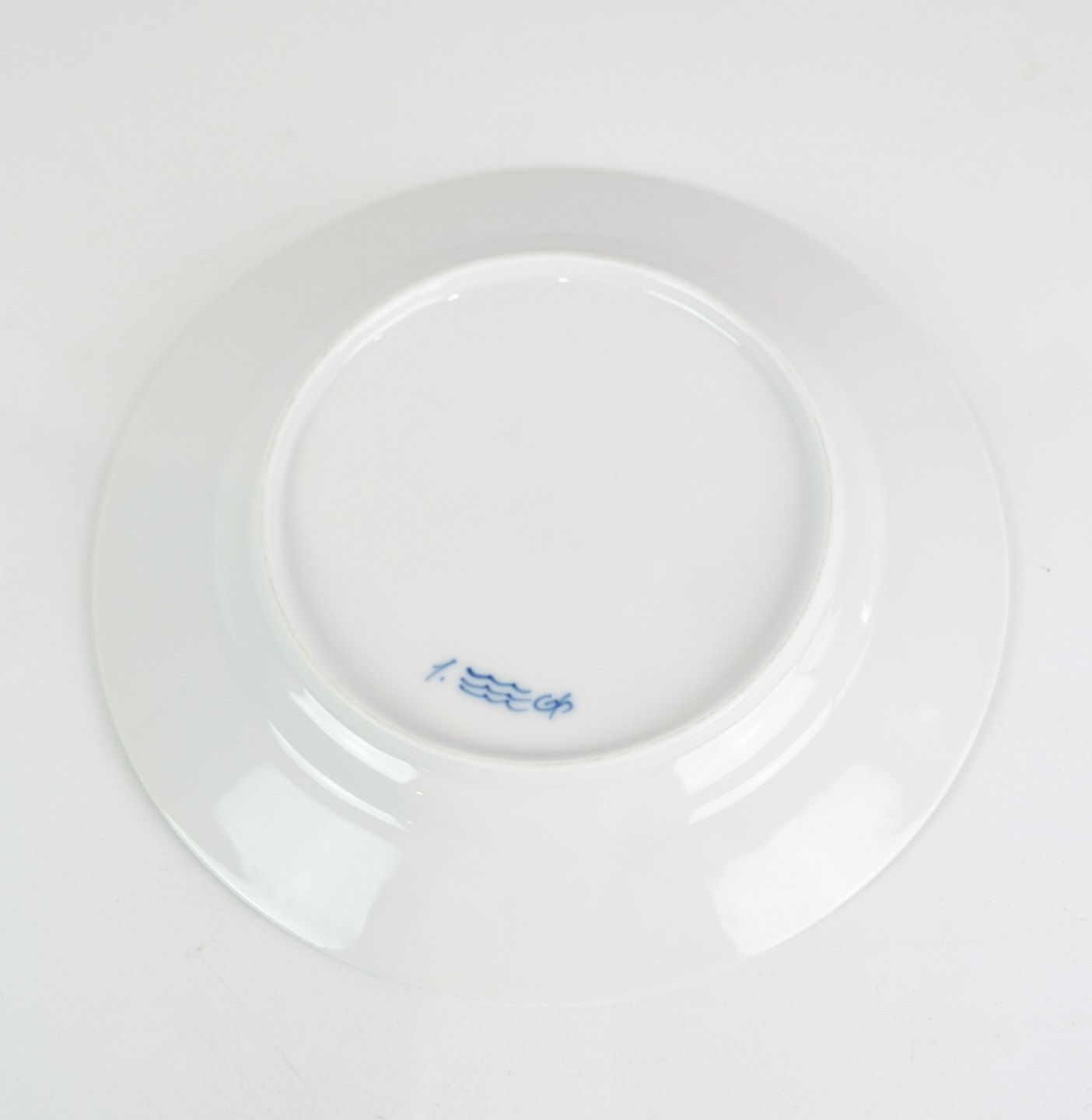 This side plate bears the distinctive Musselmalet pattern, consisting of delicate blue patterns that adorn the surface of the plate. This pattern has become synonymous with Royal Copenhagen and Danish porcelain tradition.