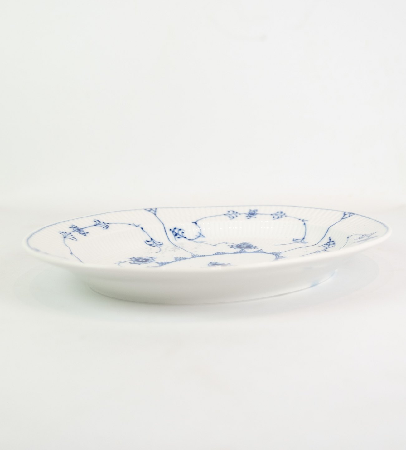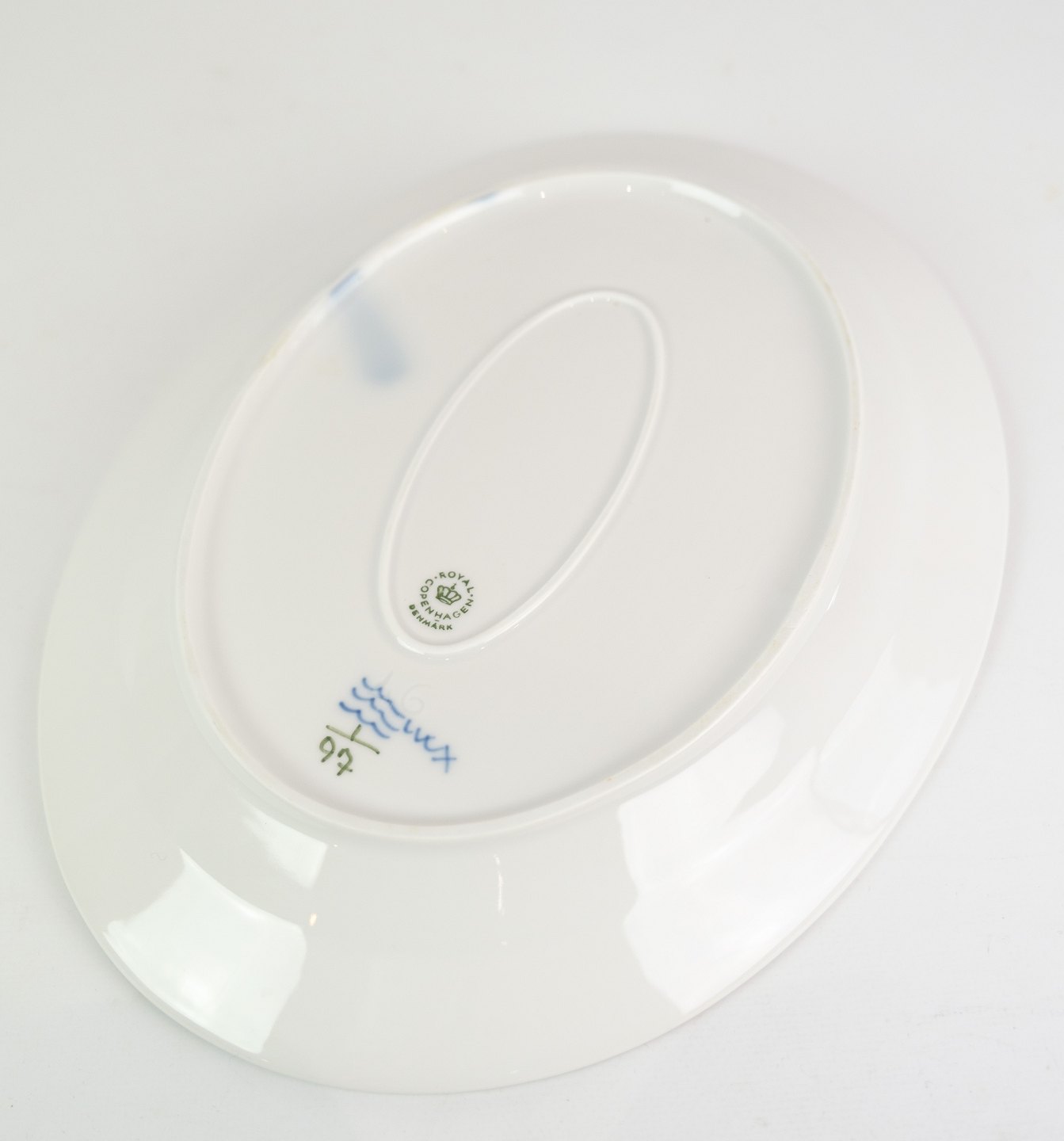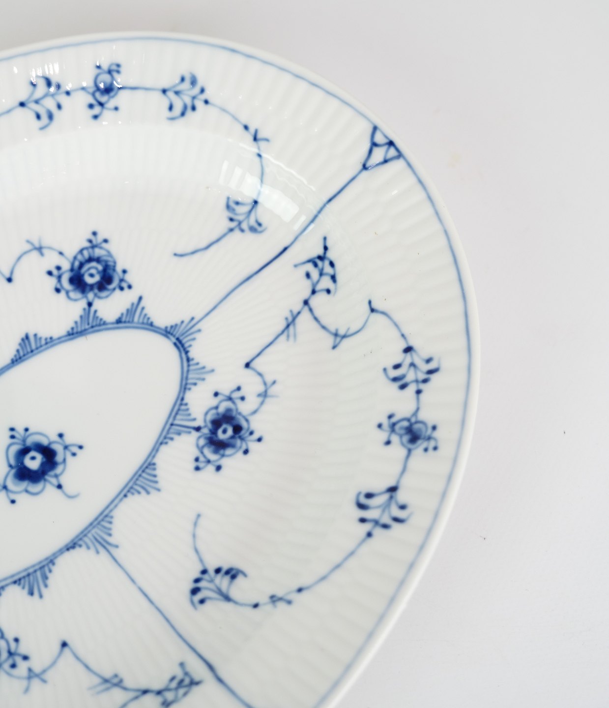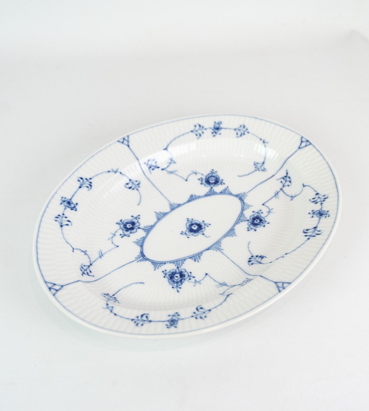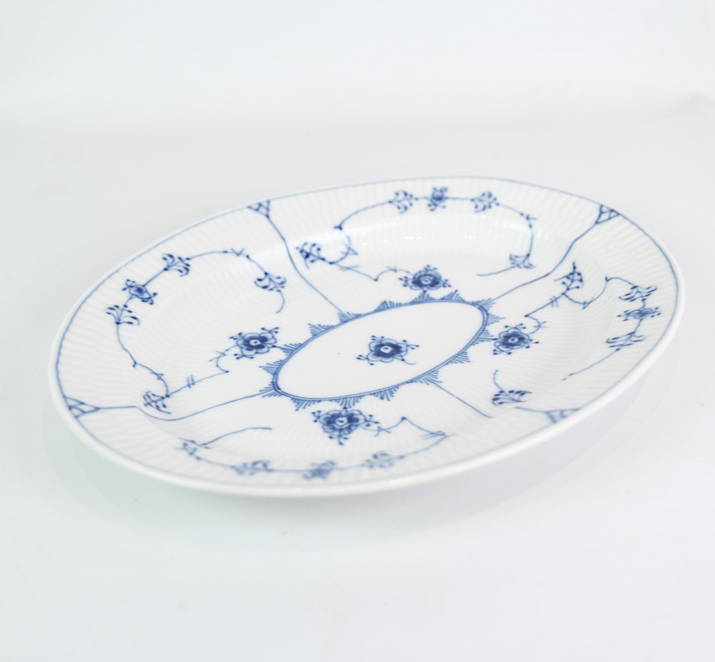 SolgtRoyal Copenhagen's Musselmalet Riflet ovale fad med dekorationsnummer 1/97 er en smuk og alsidig del af din borddækning, der udstråler tidløs elegance.