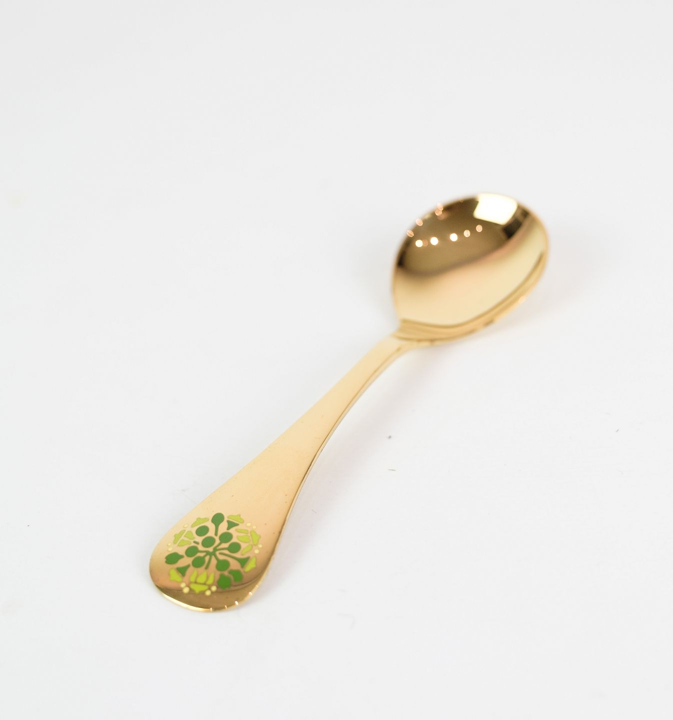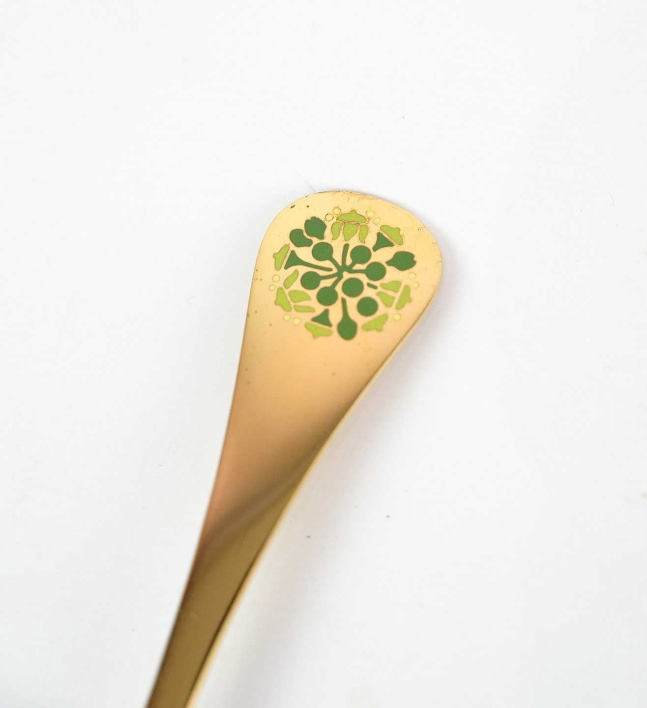 Georg Jensen Årsske i årgang 1989 af forgyldt sterling sølv med emajle af grønt blomster motiv