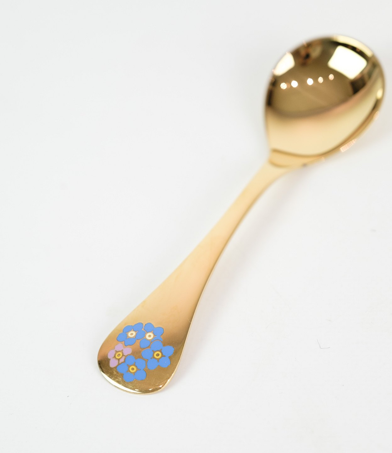 Georg Jensen Årsske med motiv af en blomst kaldet Forglemmigej fra årgang 1983 er lavet af forgyldt sterling sølv. Dette elegante og smukke sølvbestik er designet af den berømte danske sølvsmed Georg Jensen, og det er en vidunderlig tilføjelse til enhver samling af luksuriøst bestik.
