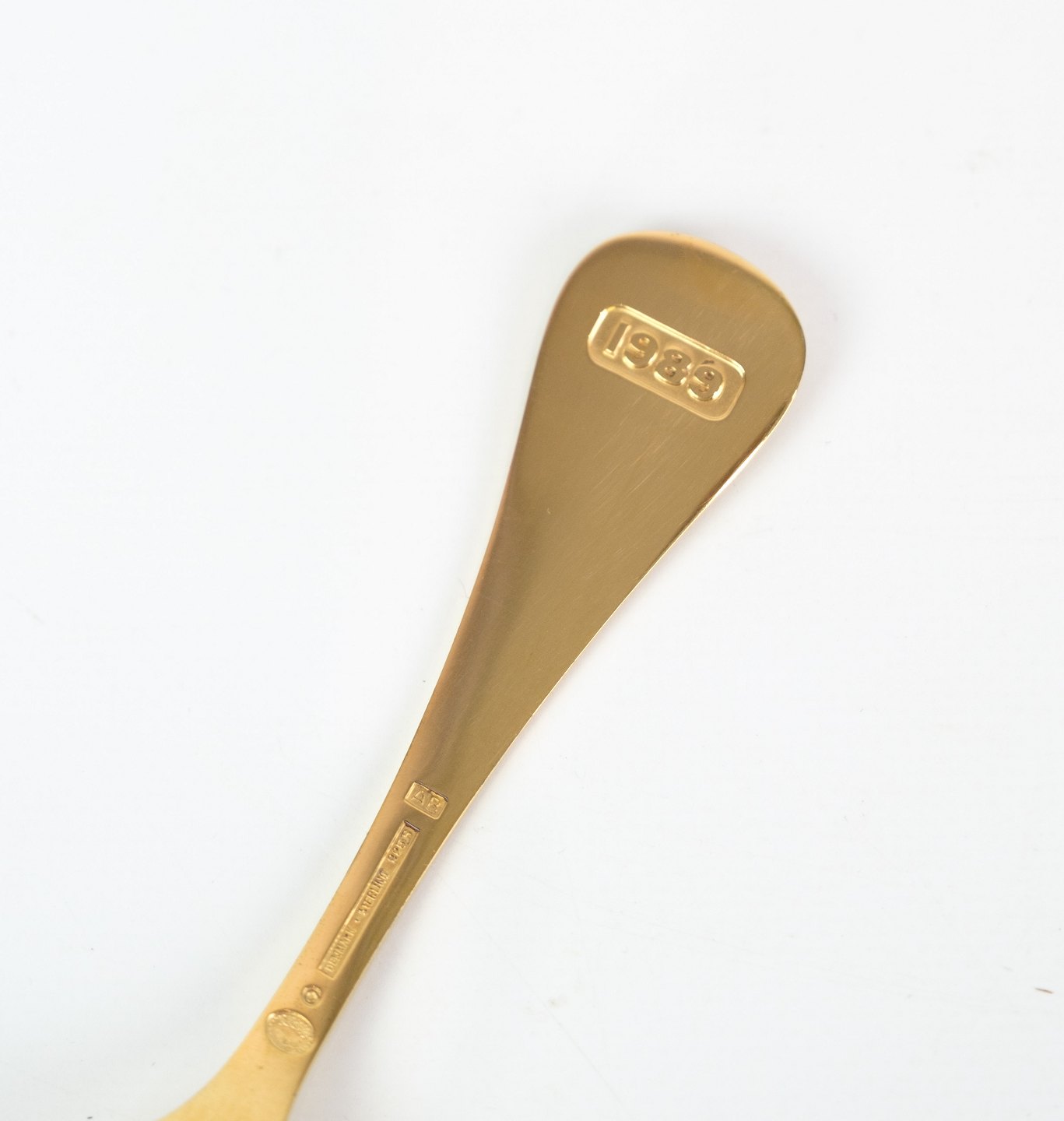 SoldGeorg Jensen Year fork in vintage 1989 of gold-plated sterling silver with green floral motif enamel