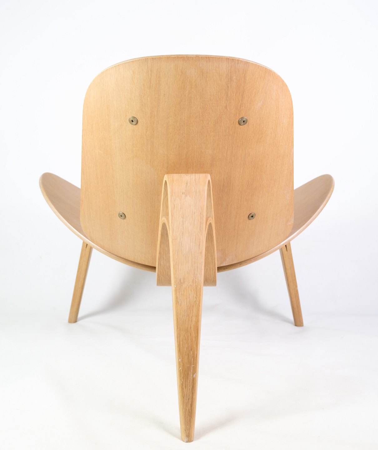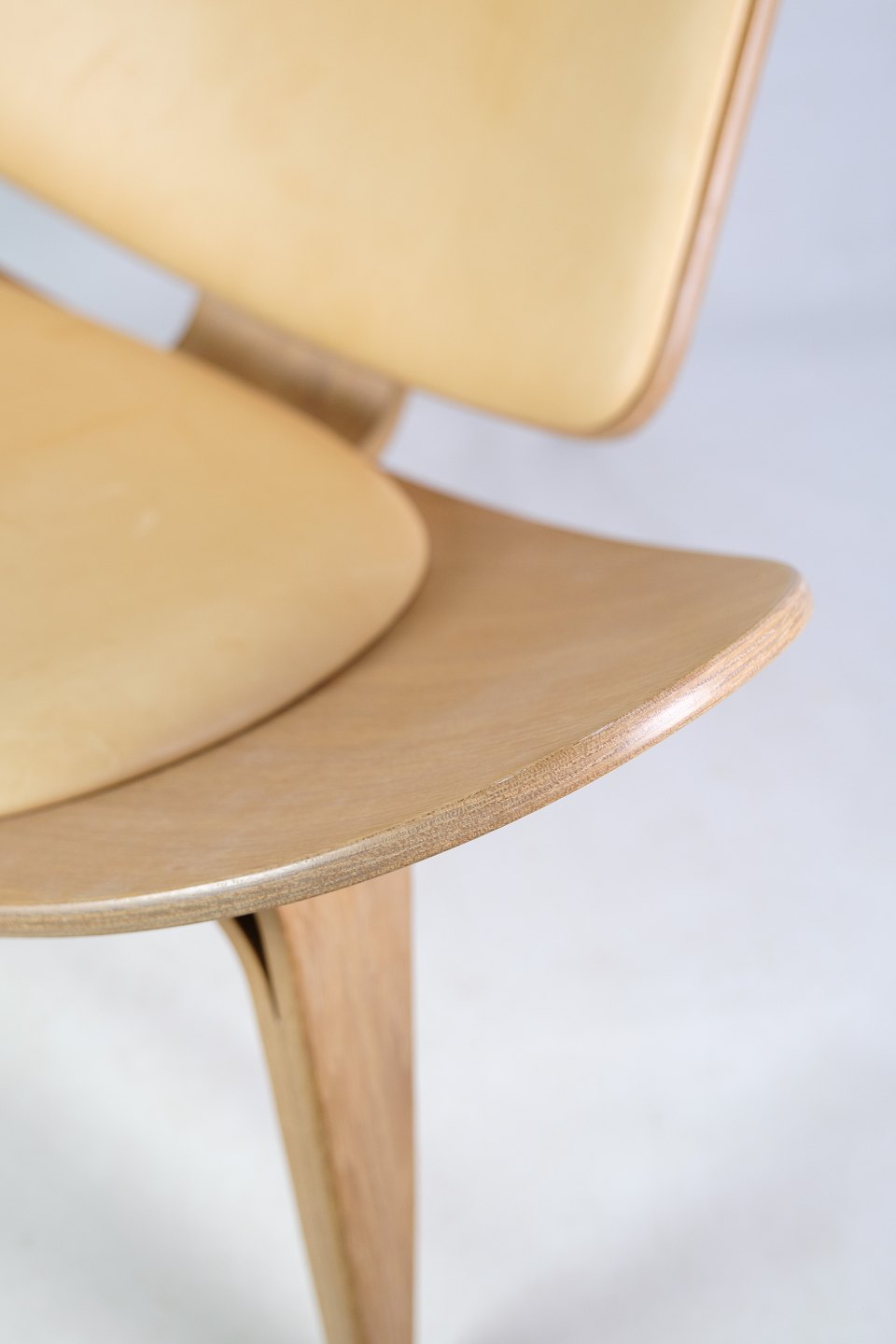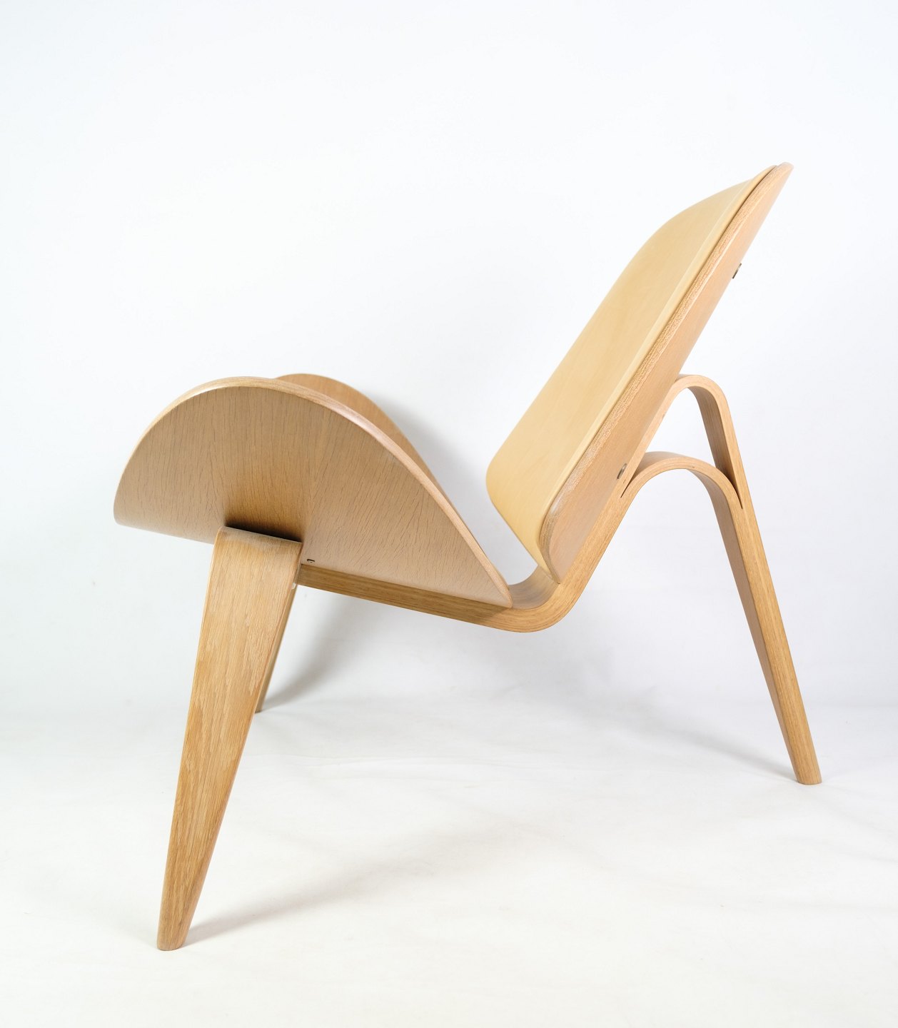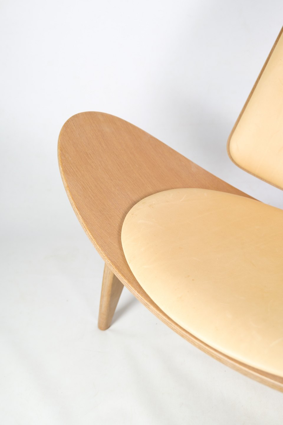 SoldThe shell chair model CH07, designed by Hans J. Wegner, made of oak with light natural leather with patina by Carl Hansen & Søn with original labels.