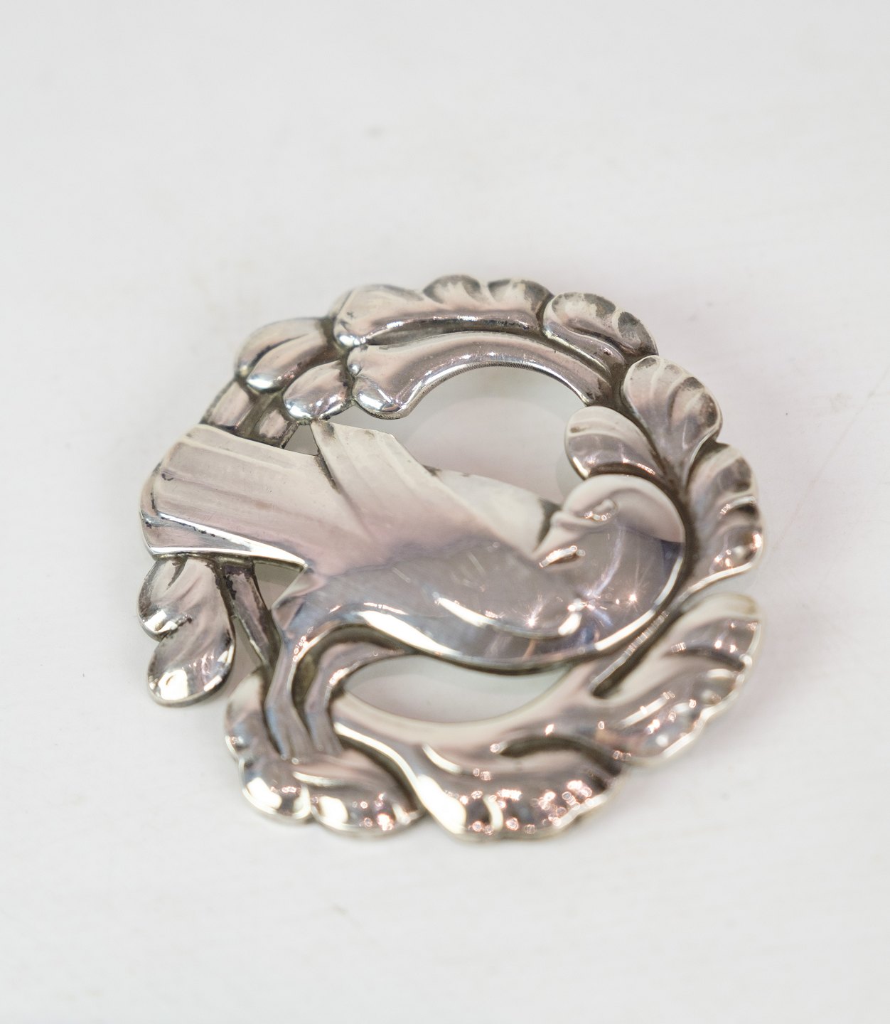 SolgtStor broche af Georg Jensen med velkendt fuglemotiv i original æske i sterling sølv 925 model nr. 70
