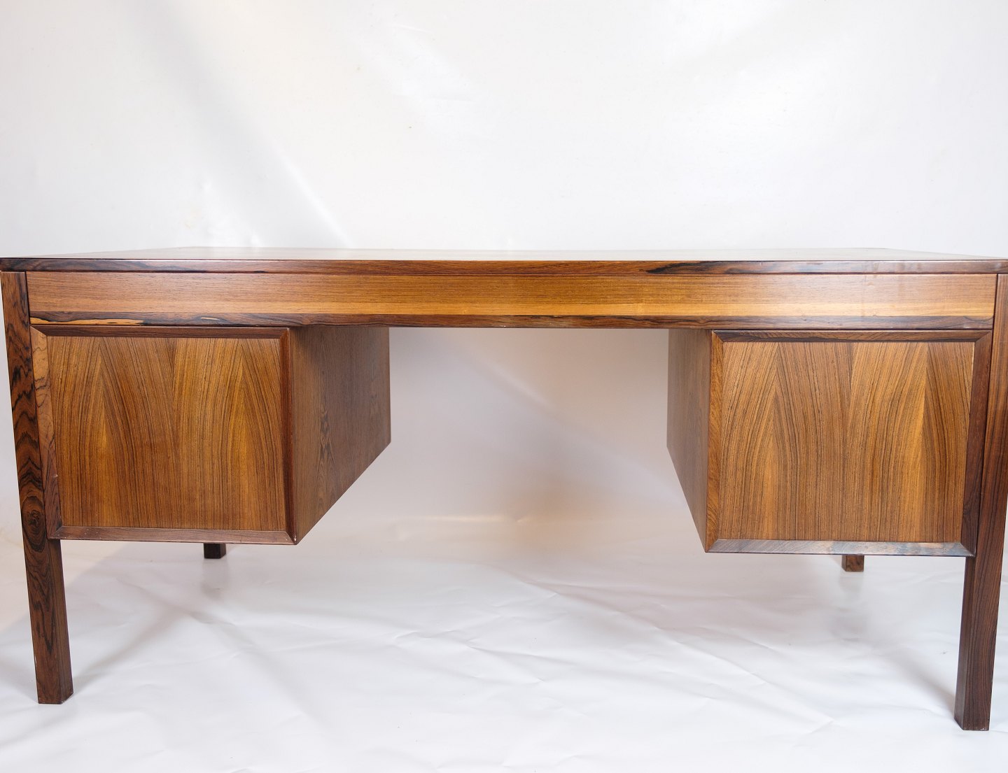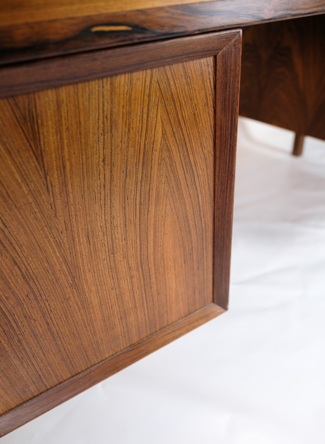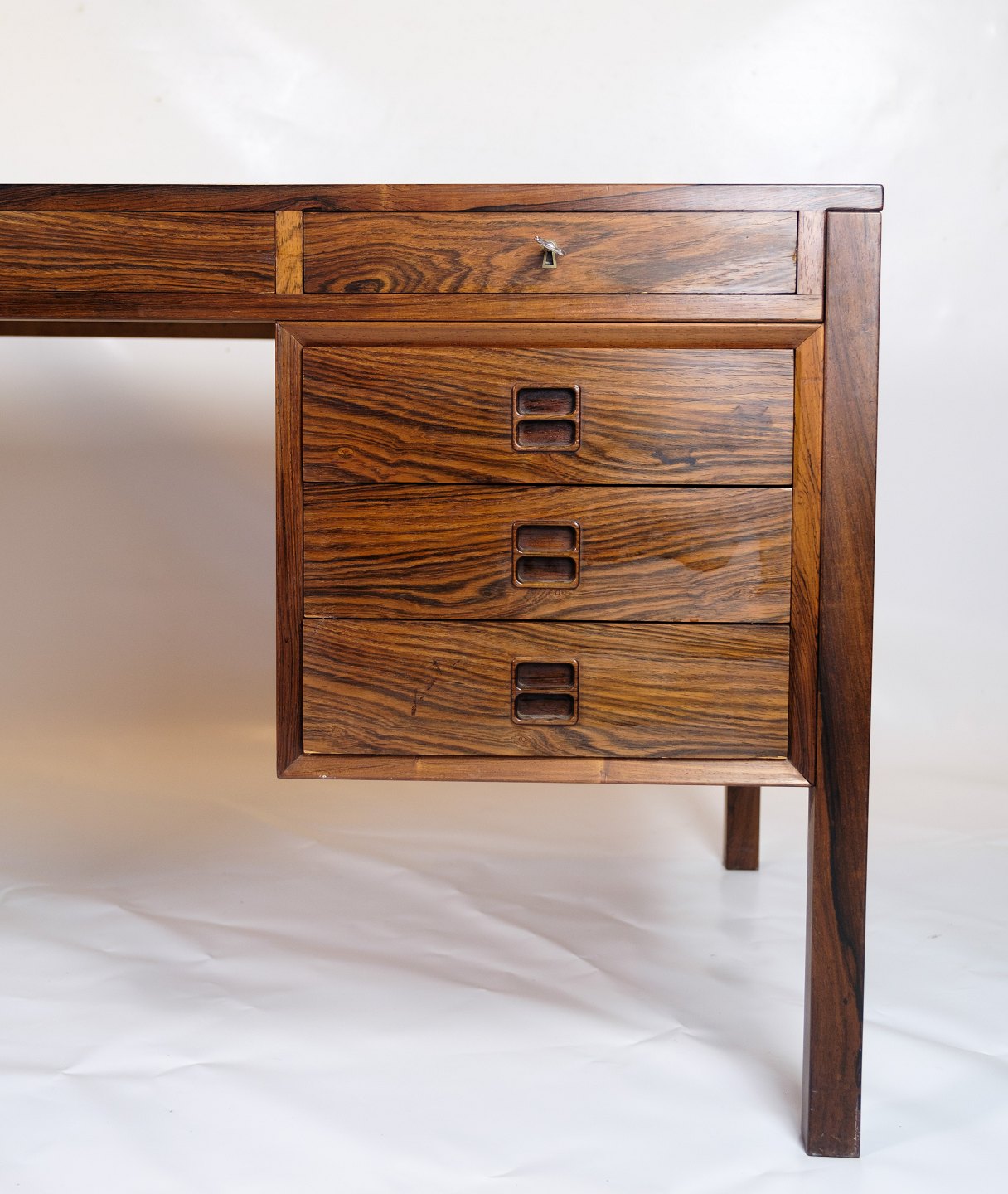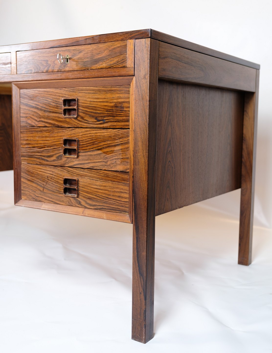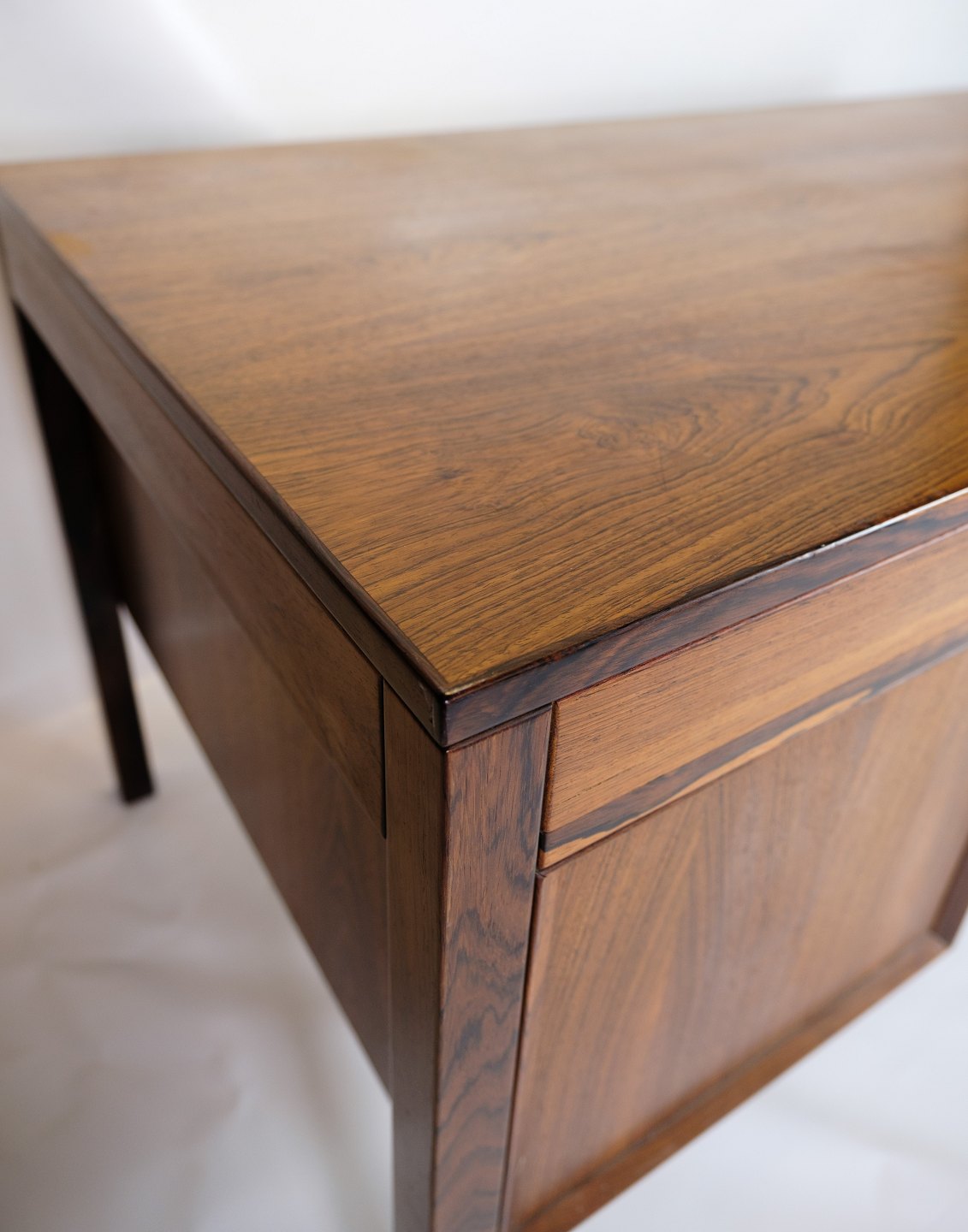 SolgtDette skrivebord er et pragteksemplar af dansk design fra 1960'erne, udført i rosewood, også kendt som palisandertræ. Med sin smukke og varme farvetone og karakteristiske åretegning udstråler dette skrivebord en tidløs elegance og luksus.