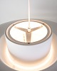 The body of the lamp, made of white lacquered metal, radiates a subtle shine and creates a visual lightness. The oval shape adds a modern touch while maintaining a classic yet sophisticated aesthetic. The soft arc and symmetry of the design make this ceiling lamp more than just a light source; it becomes an artistic statement that transforms any space.